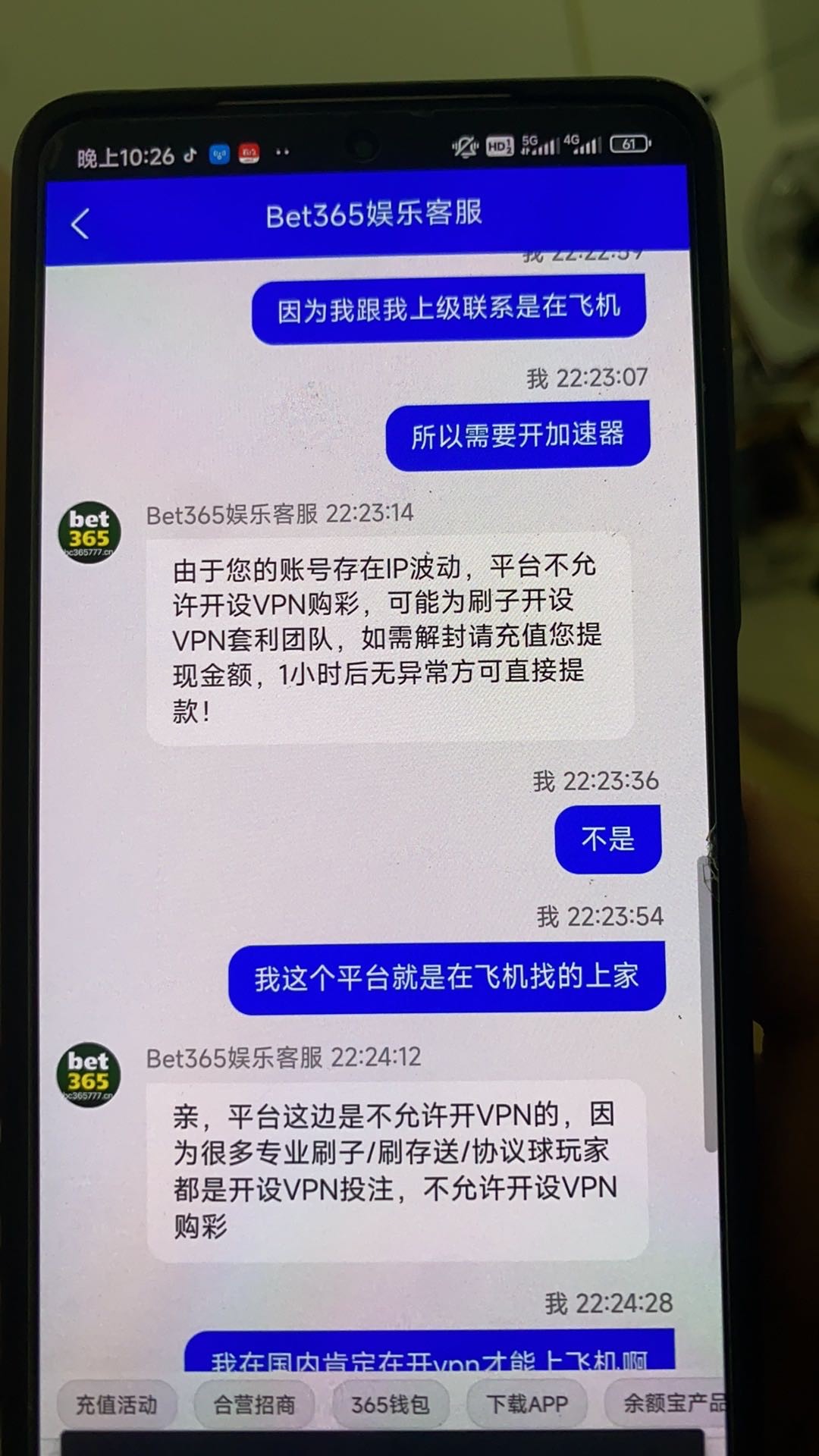 充175 打到400提300  还剩一百  本来想领彩金的但是领不得了了  又从一百打到五百提400  我一直开着外网加速器第一次提款没问题第二次说ip波动跟我说充值提现金额等一小时ip没问题就可以提  我都还没说不充呢  提现400就被摸掉了 说i