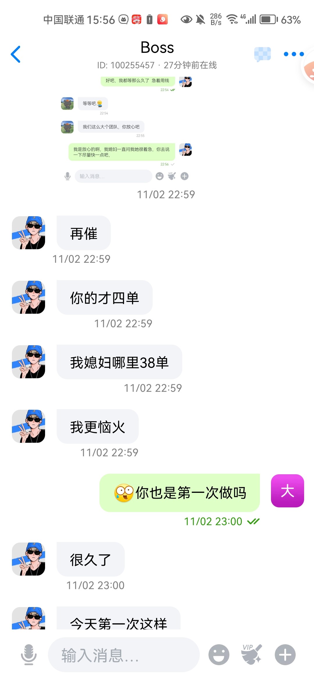 老哥们避雷一下这个人。没钱吃饭了,然后看到他那里做那种加人任务一个给25。然后给了我50个数据,然后我全加了,就通过了五个,从大前天等到现在,一直拖拖拖不回消息。昨天还想最后捞一下让我再加几个人,真的是不要脸。真是服了,本来就没钱吃饭还遇到跑路狗。昨天领了开云的彩金打上400了还直接被拉黑,艳池也是领了28上了600也是直接拉黑,真的是屋漏偏逢连夜雨。