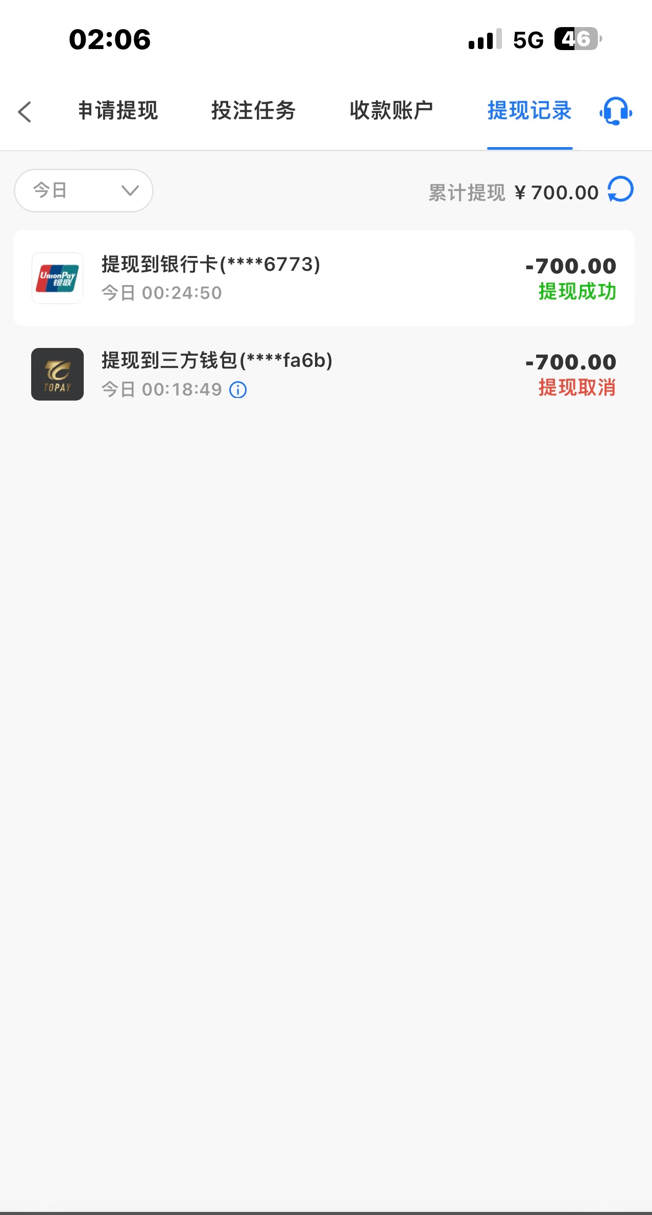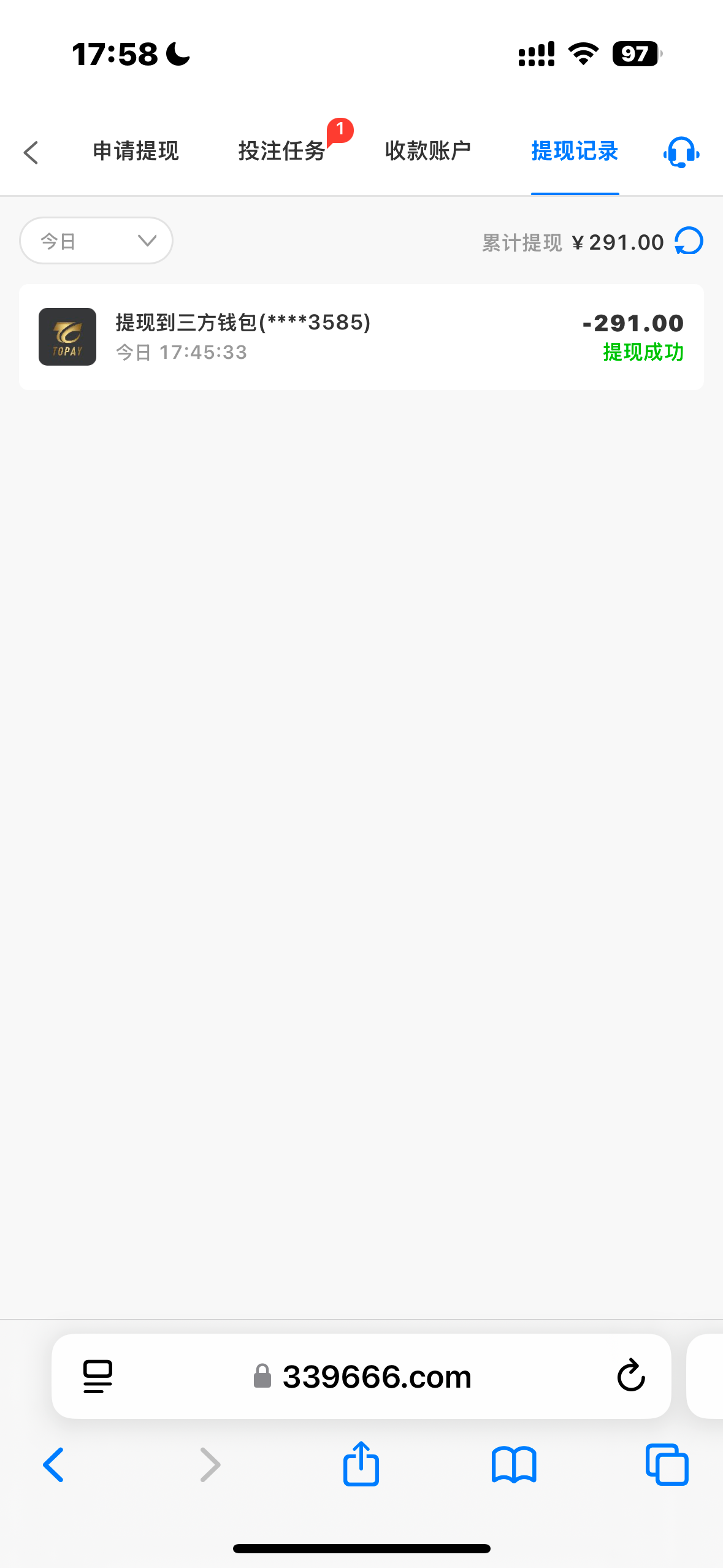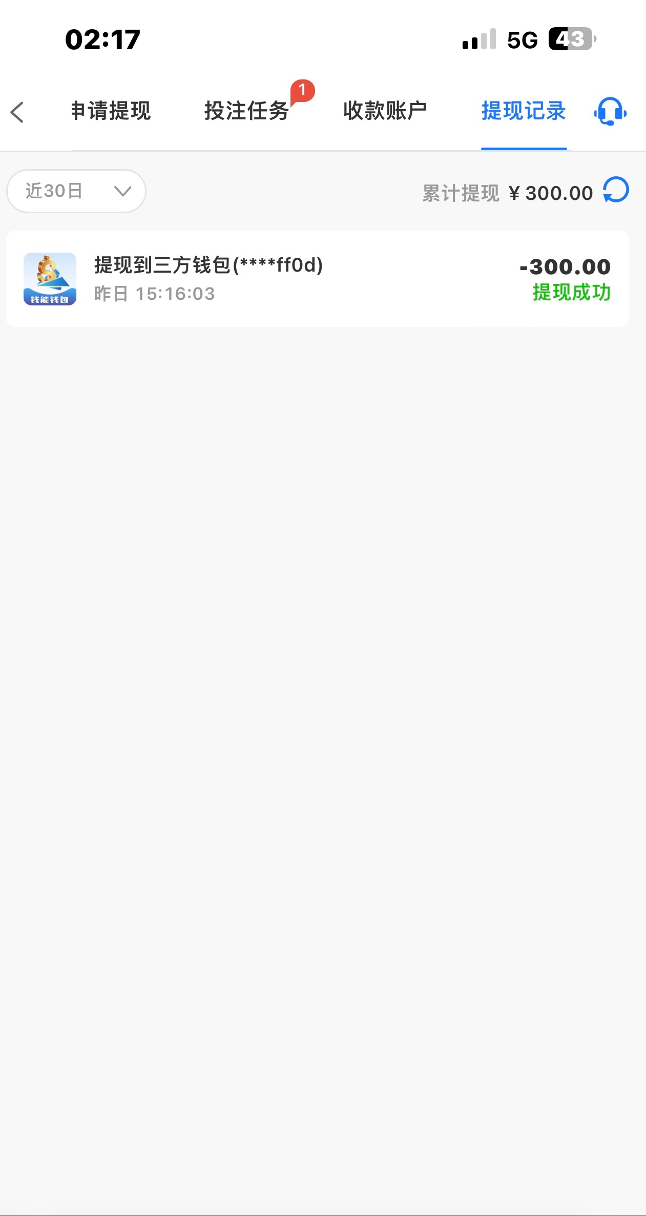 提了300,2分57秒到账。