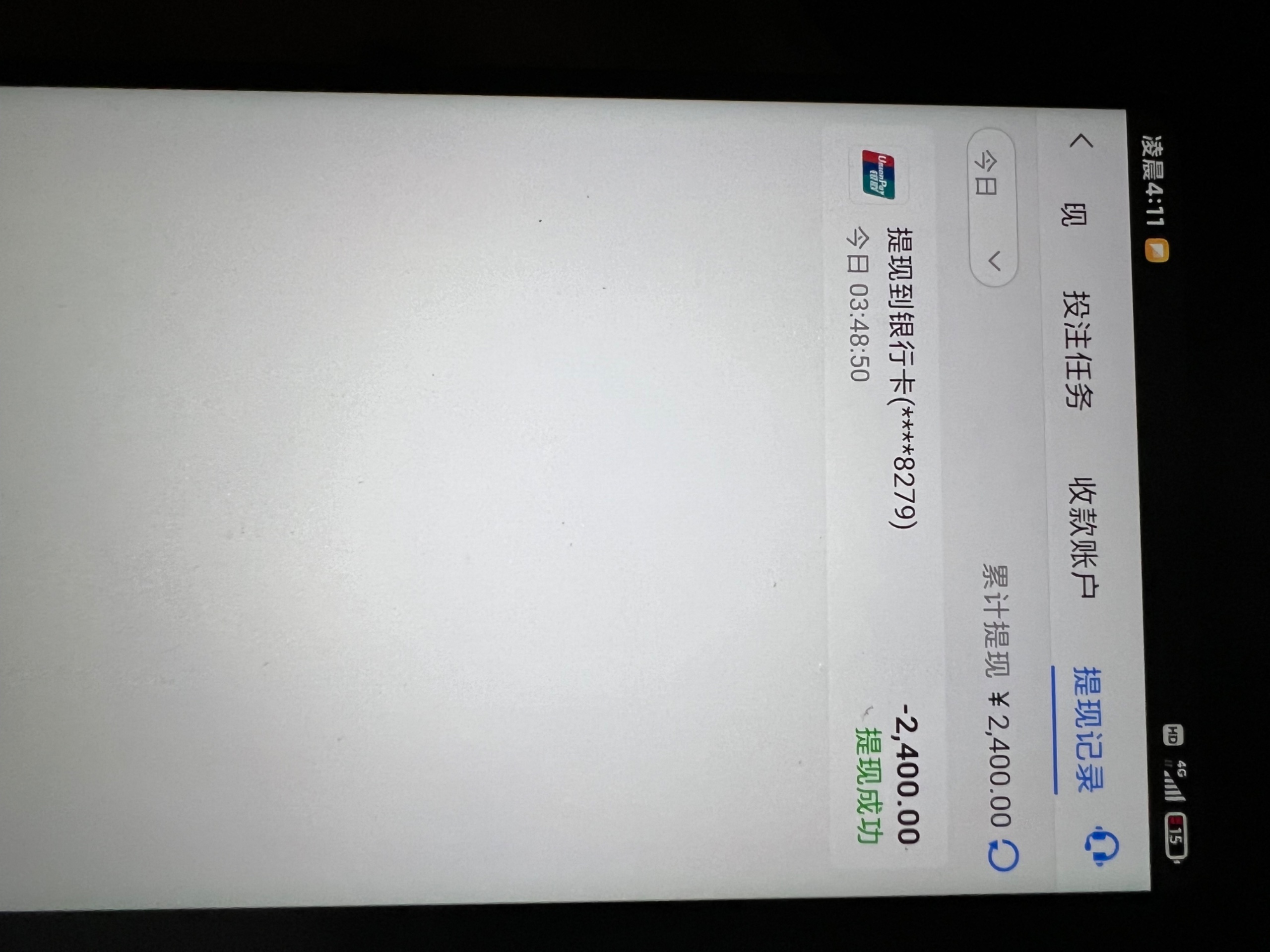 到账200