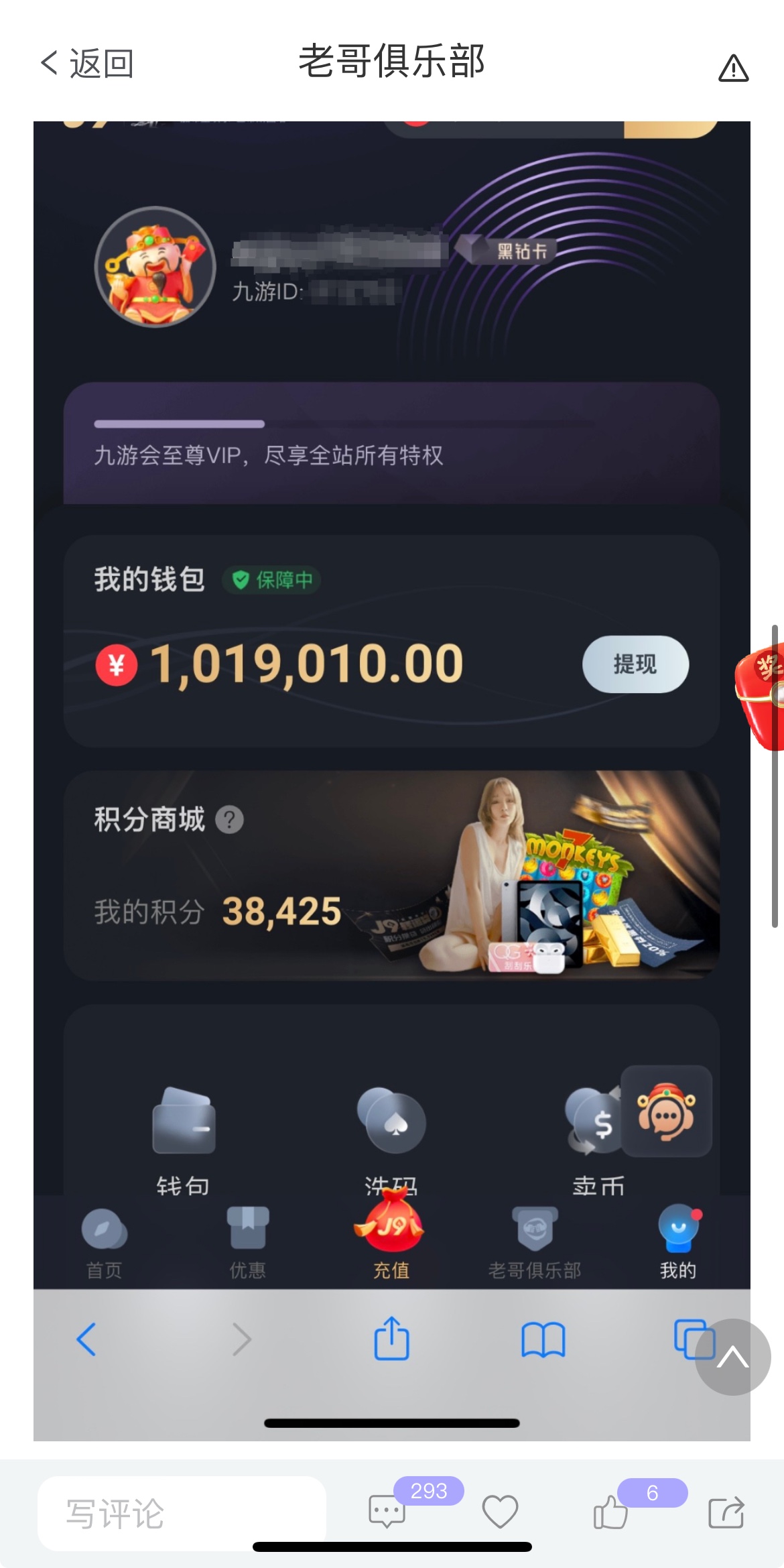 说提不了的真是没见过市面,九游格局大的很,线下提人家客户经理直接送现金来,而且真正的AG直营之一 上半年有个人在野鸡的AG中了那个Jack 90几个 野鸡想吞了 给他封号了 他去就九游论坛发帖求助 九游联系AG找到那个野鸡让他把账号解了90几个也给余额了但是要打一倍流水