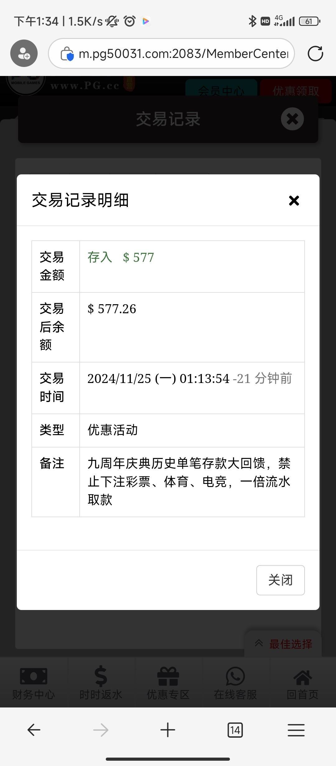 pg.cc单笔历史回馈