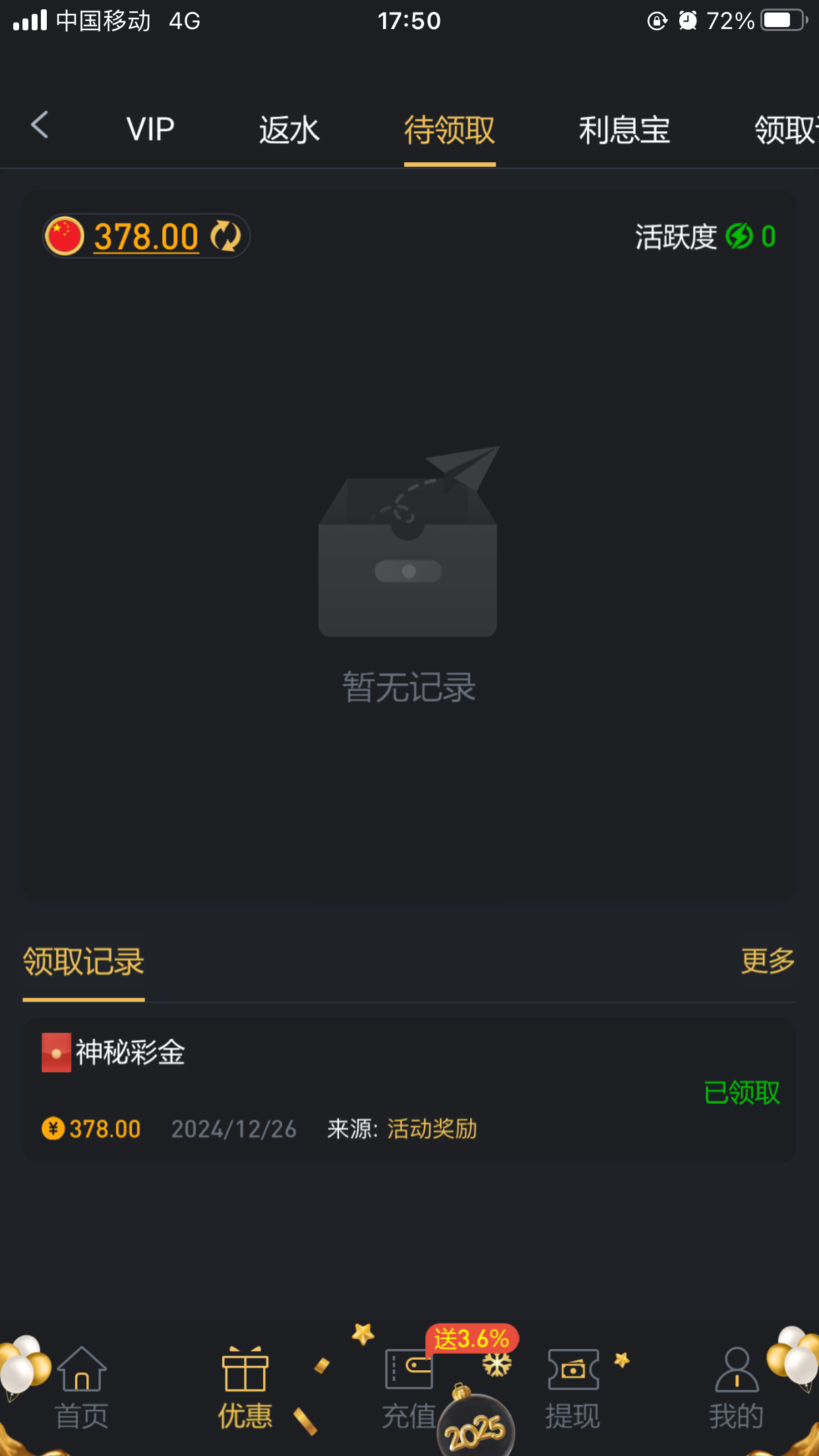 直接找客服申请神秘彩金就行