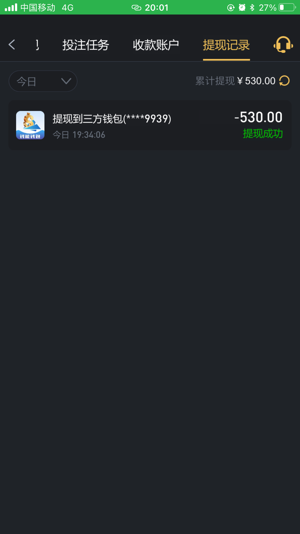 提现200圆到账了