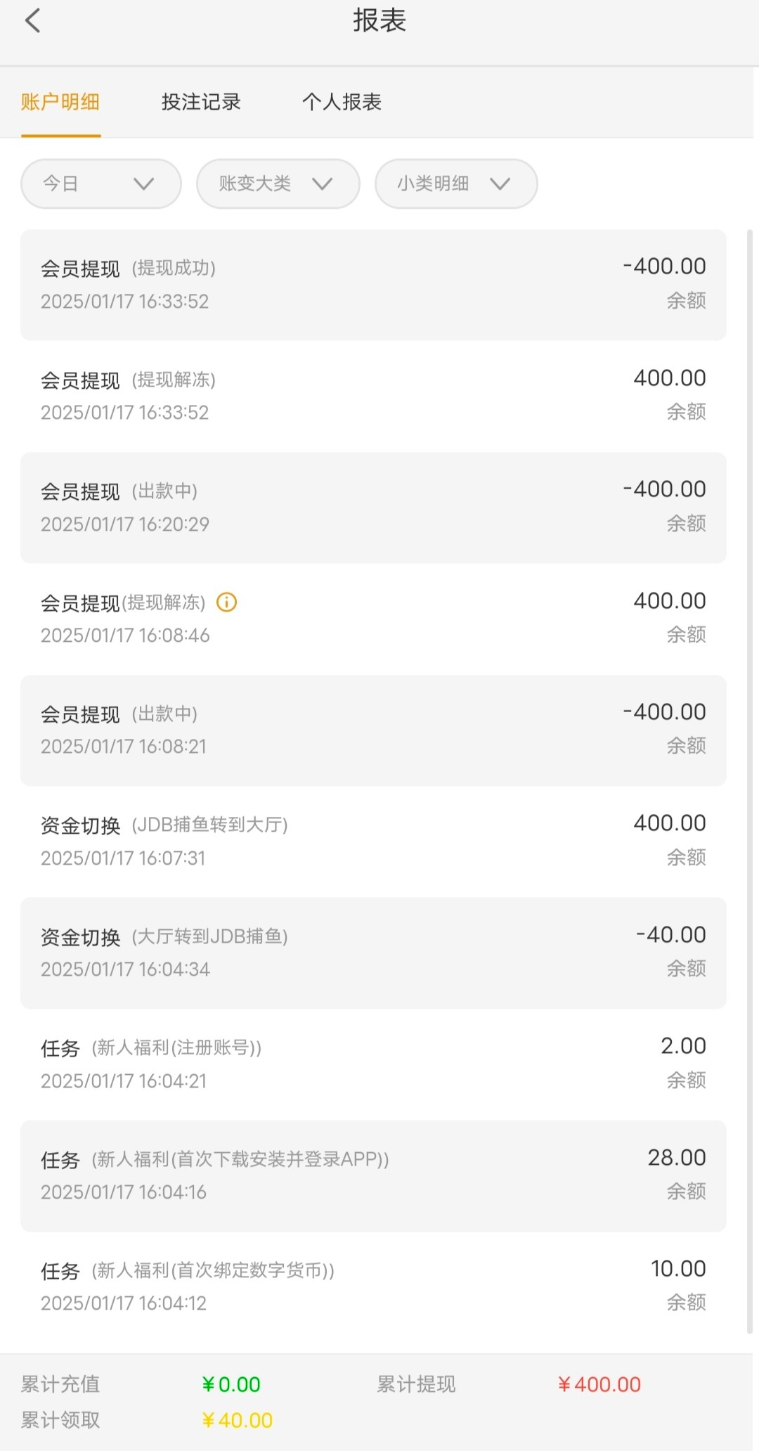 昨天提1700 今天进去有70的反水领取直接冻结账号