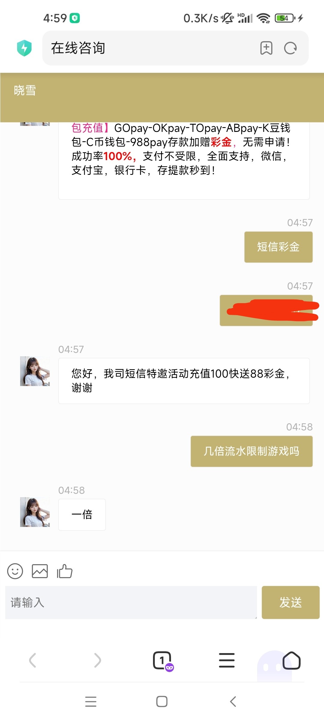 收到下面短信联系客服申请短信彩金,没有可以去碰一下试试,http://www.56986.loan