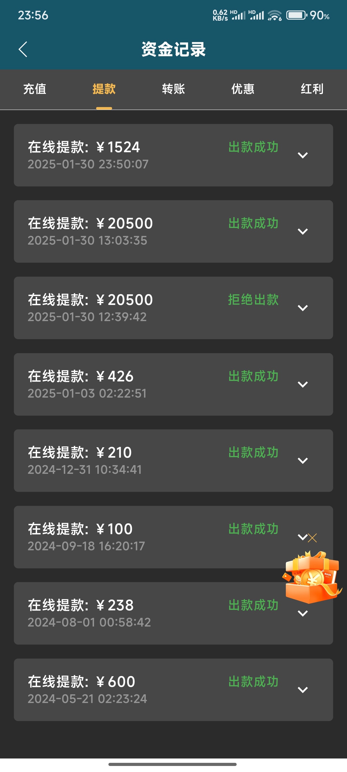 年前一直输了还欠债了,昨天又了借1k,打乐金城100%存送,1000+1000,拉pp出了两个,把贷款还清了剩1k,这个台子第一次出上万,还以为会黑,没想到给出了,果然还是无债一身轻啊,不团饭,也祝各位老哥早日上岸。