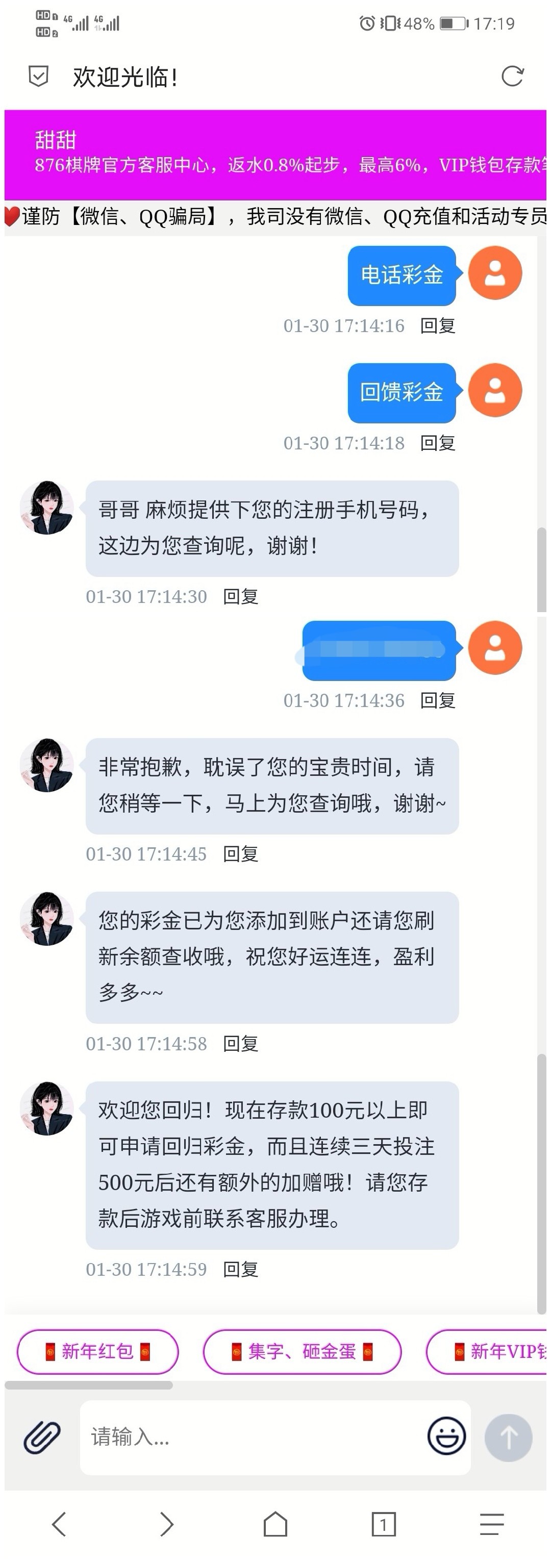 电话彩金 回馈彩金 回访彩金
