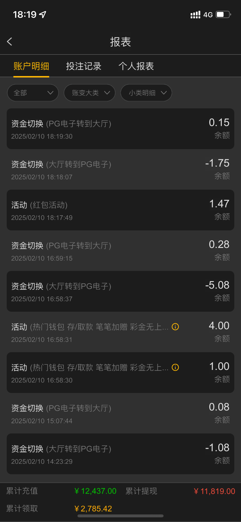 充20领了18下了100