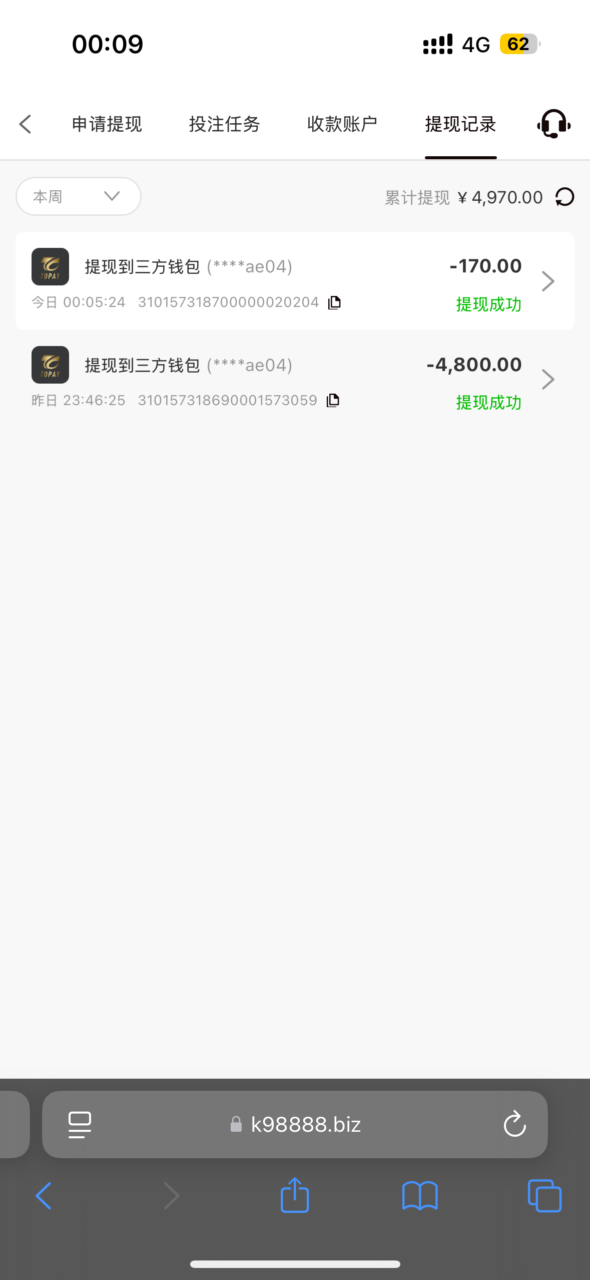 论坛看见的 500+500  出了4950  开始全程只上了一个游戏,没有很高底分,基本都是0.4、0.8,一直磨和爆小分累积上去,需要游戏名称。(没办法,最低倒下几个w)自己计算着够1.2w流水了,但是看记录差2000+,开始算流水是8折 后面直接7折 无奈又玩了pg平拉,死了700左右。