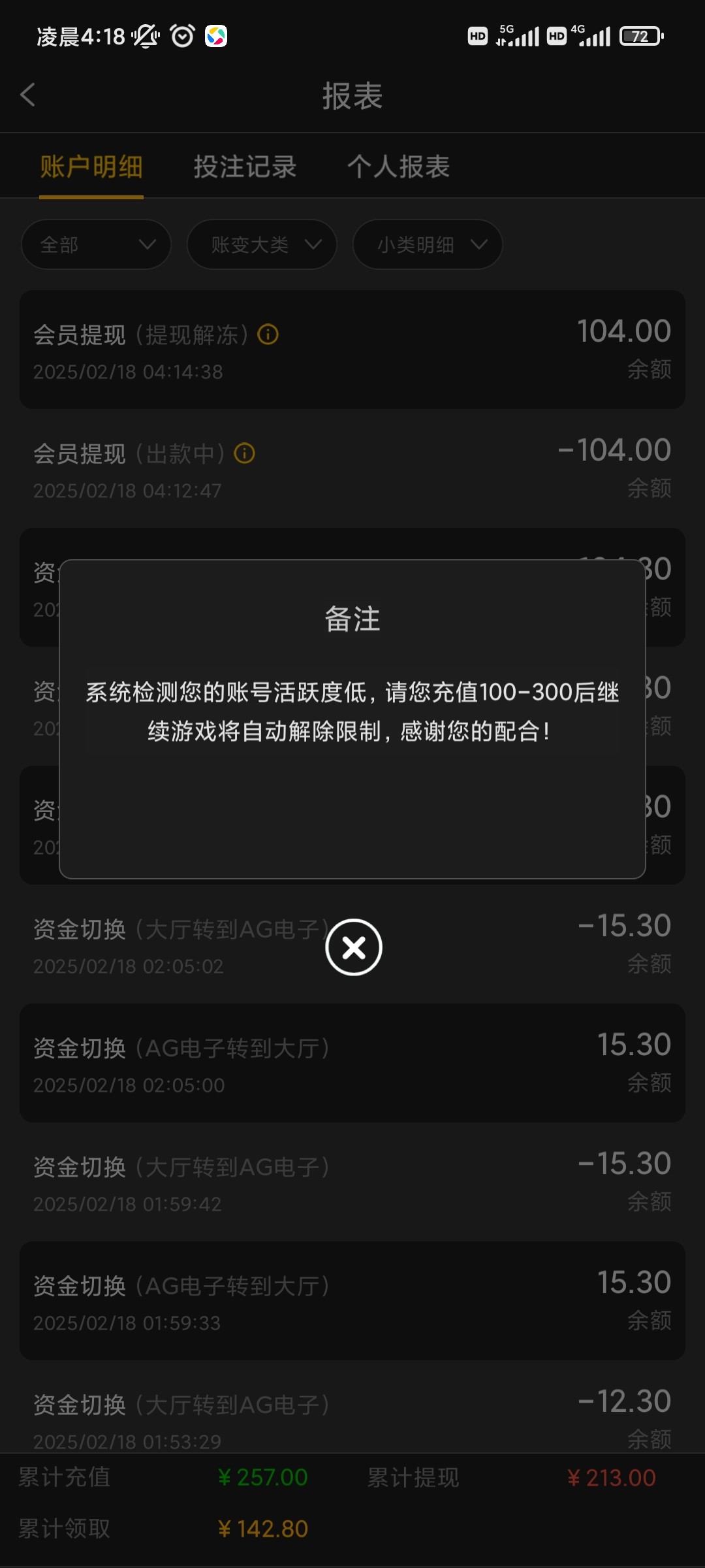 最近赌傻了,没钱了就正常了,彩金上100,活跃度不足,提不了.要充值,庄家又给我上一课,没有学会留应急资金,我trn简直就是畜生,为什么我还没学会