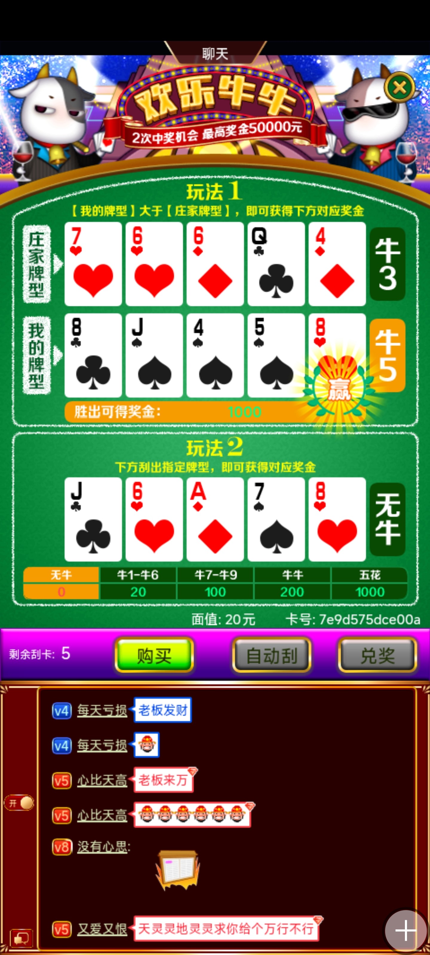 充100,买了三四张就给了,小赚500