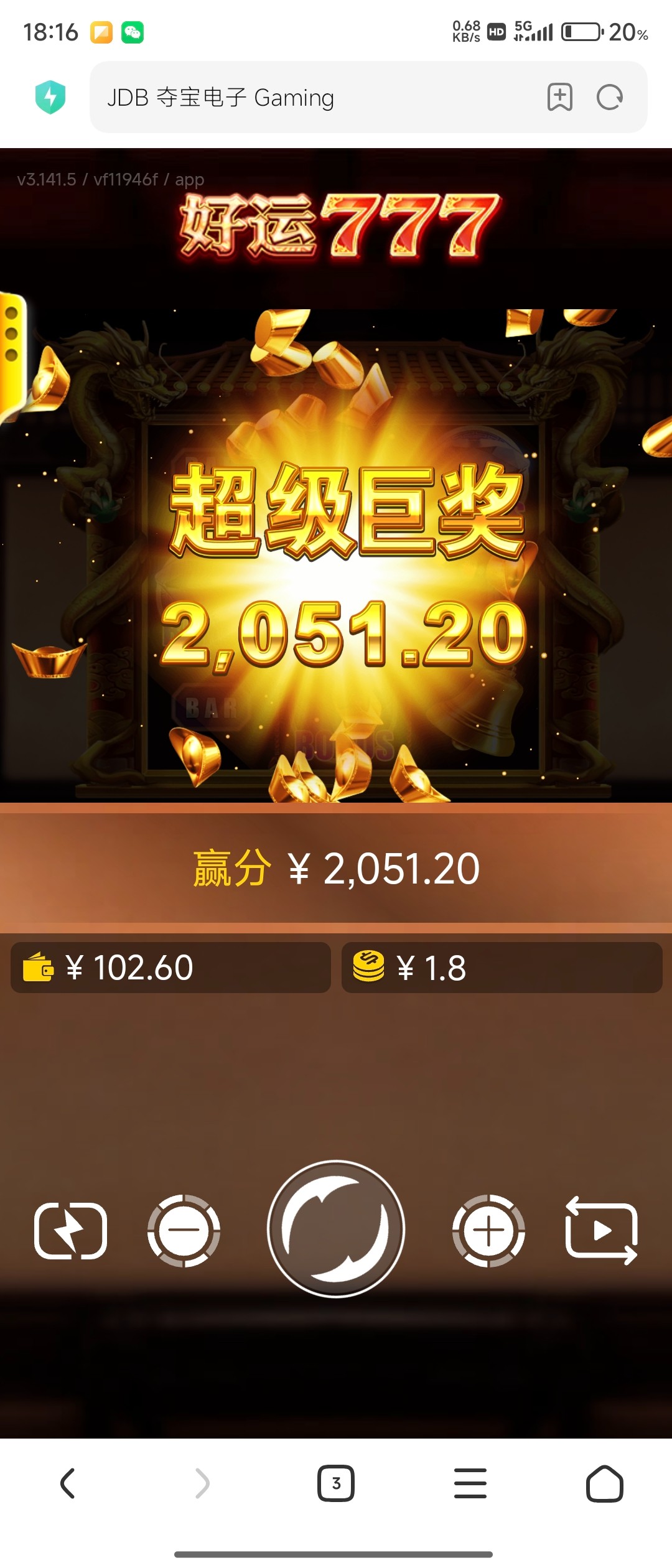 居然真给了,还以为不会到,我全程只打麻1,一直空转,不过我好运两次进胡都是胡中胡,最后一次拉3块给了700马上提了