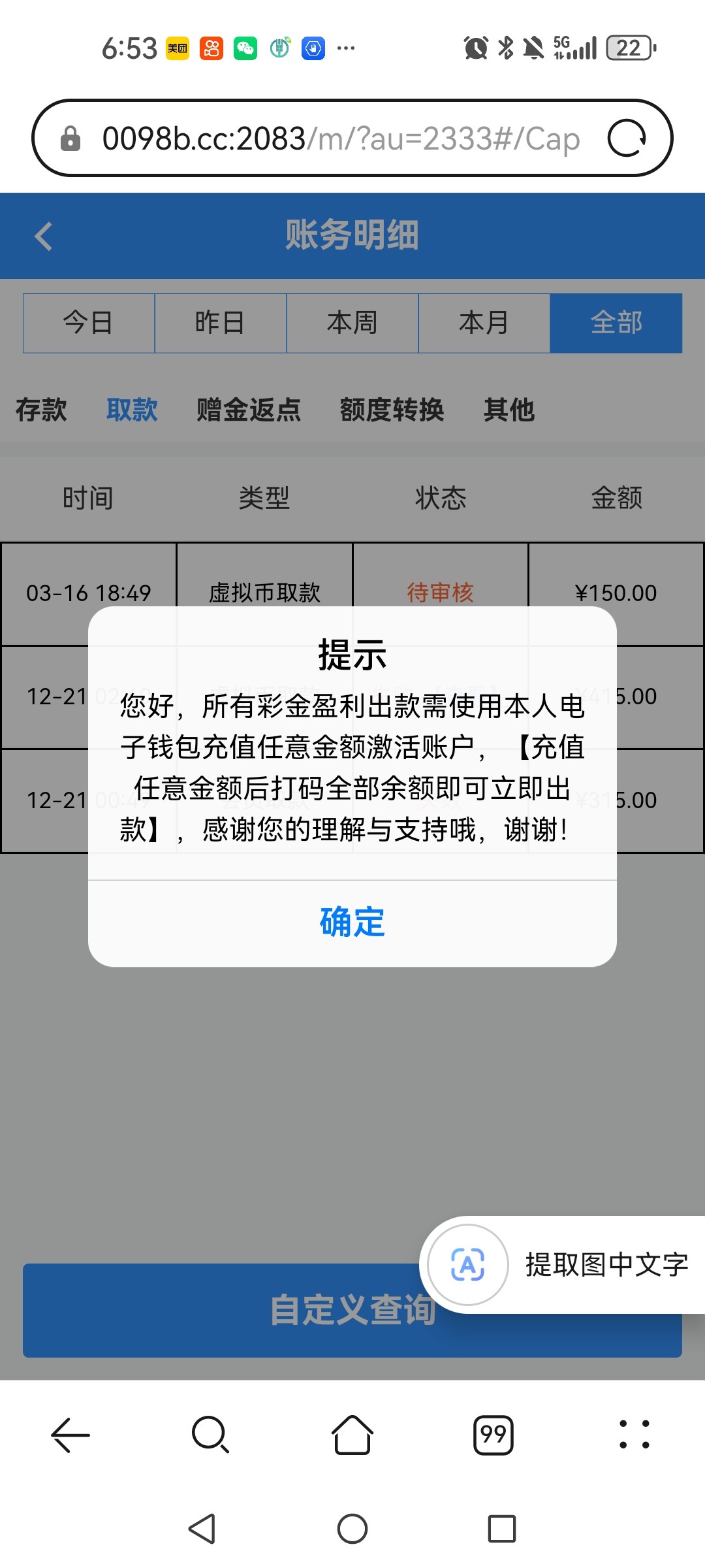 这个能不能出款  以前打到400不能出款  今天回馈8块打到150提了不知道能不能出款