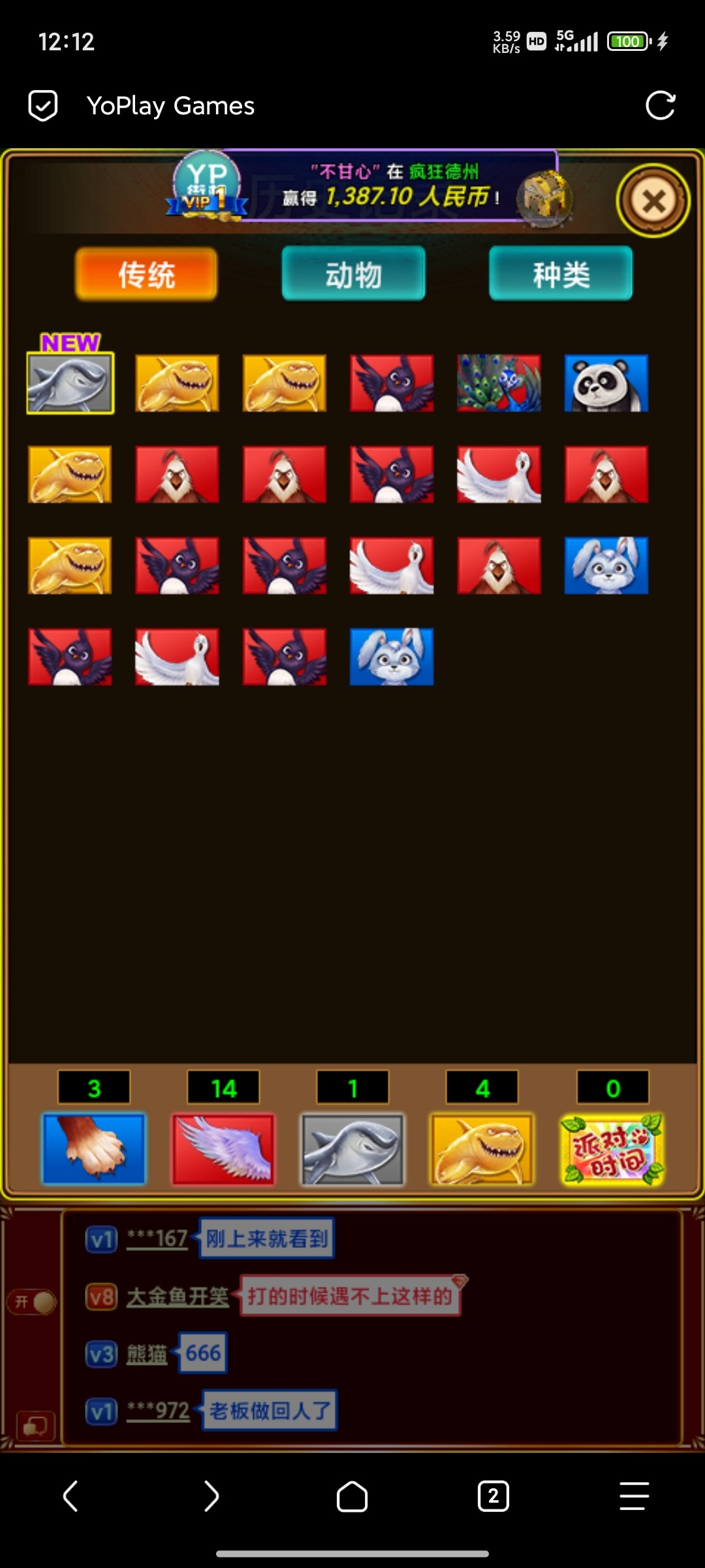 哈哈哈 100打麻将上800,捕鱼上2000