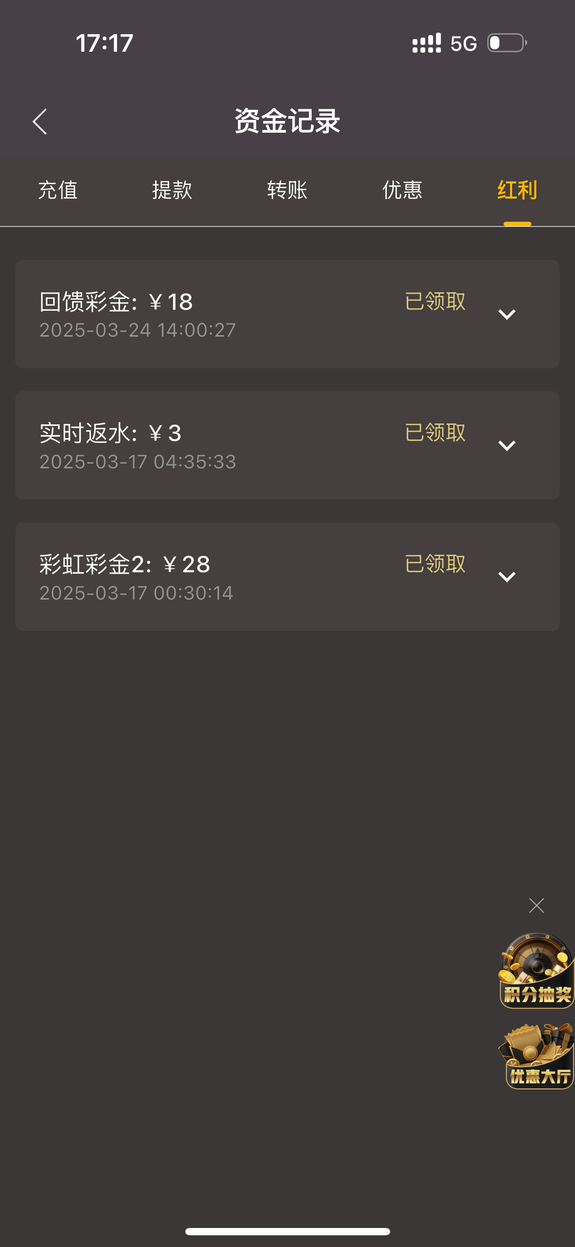 之前充值过的,基本都有