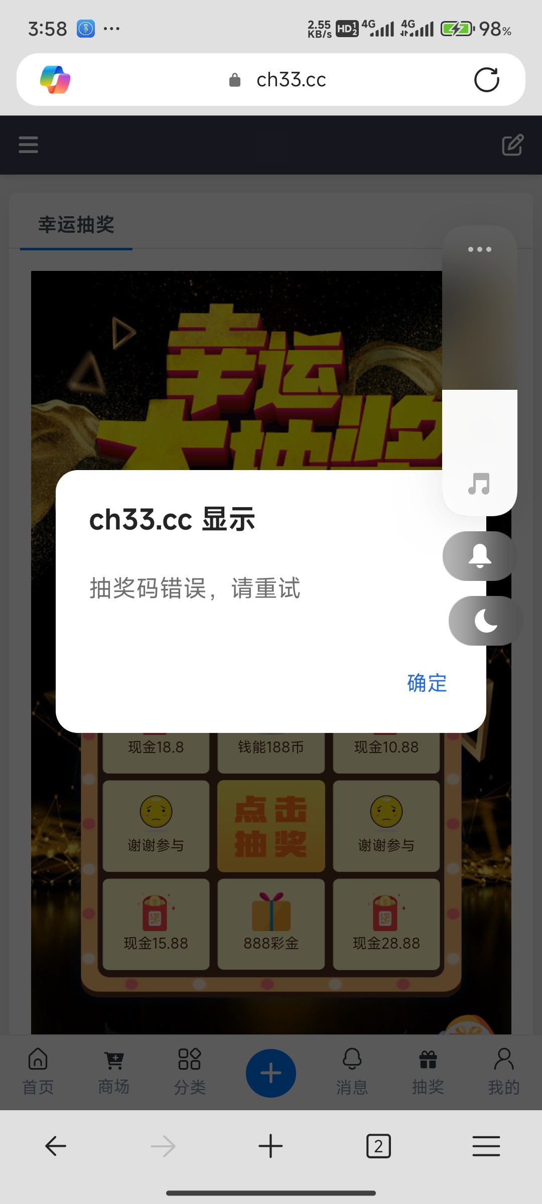 论坛抽奖中了888彩金
