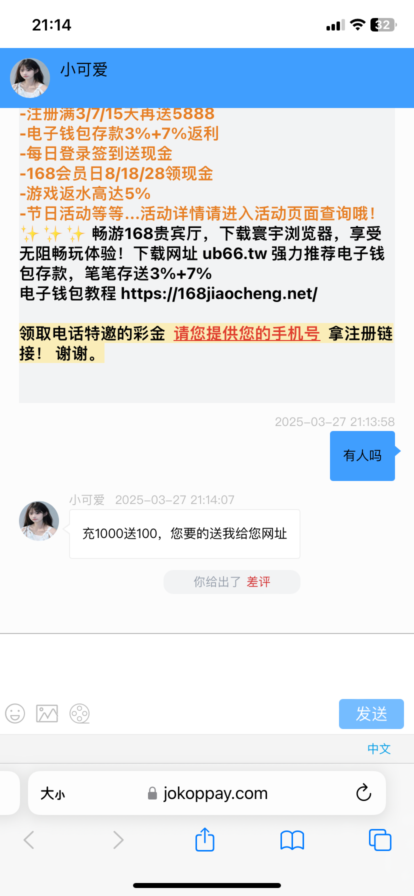 563568.com进去是客服报手机号领注册地址然后送28 加旺旺客服又送18
