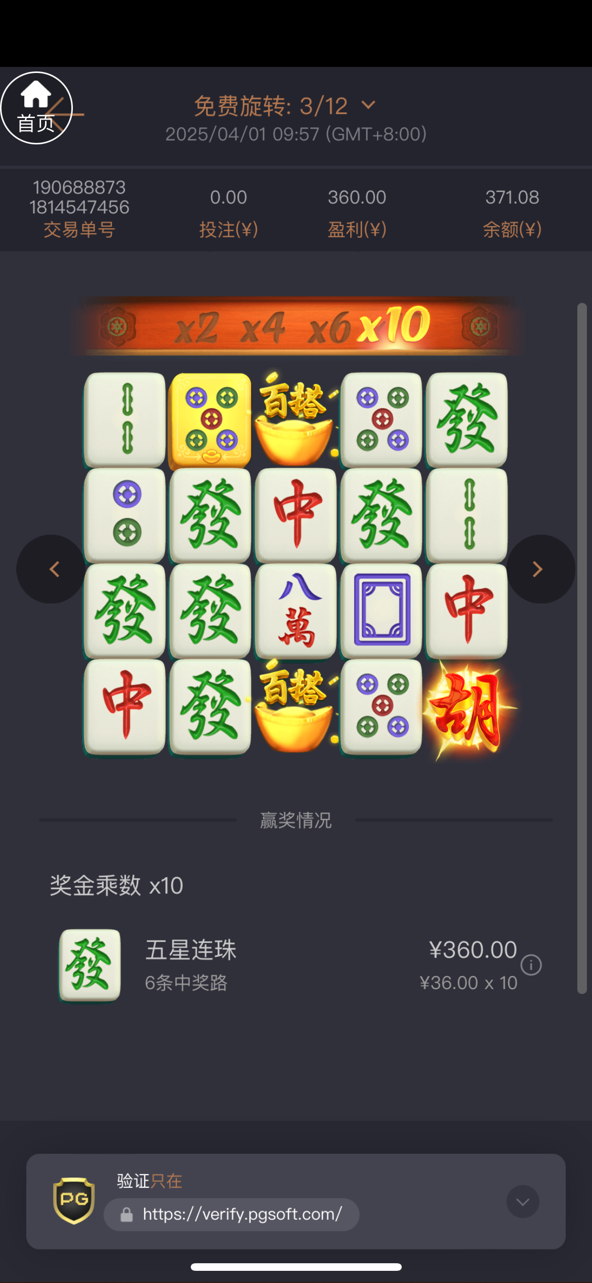 牛逼大水,本来都不抱希望了,结果快输完的时候来了首免费炸了300多倍,提现到账