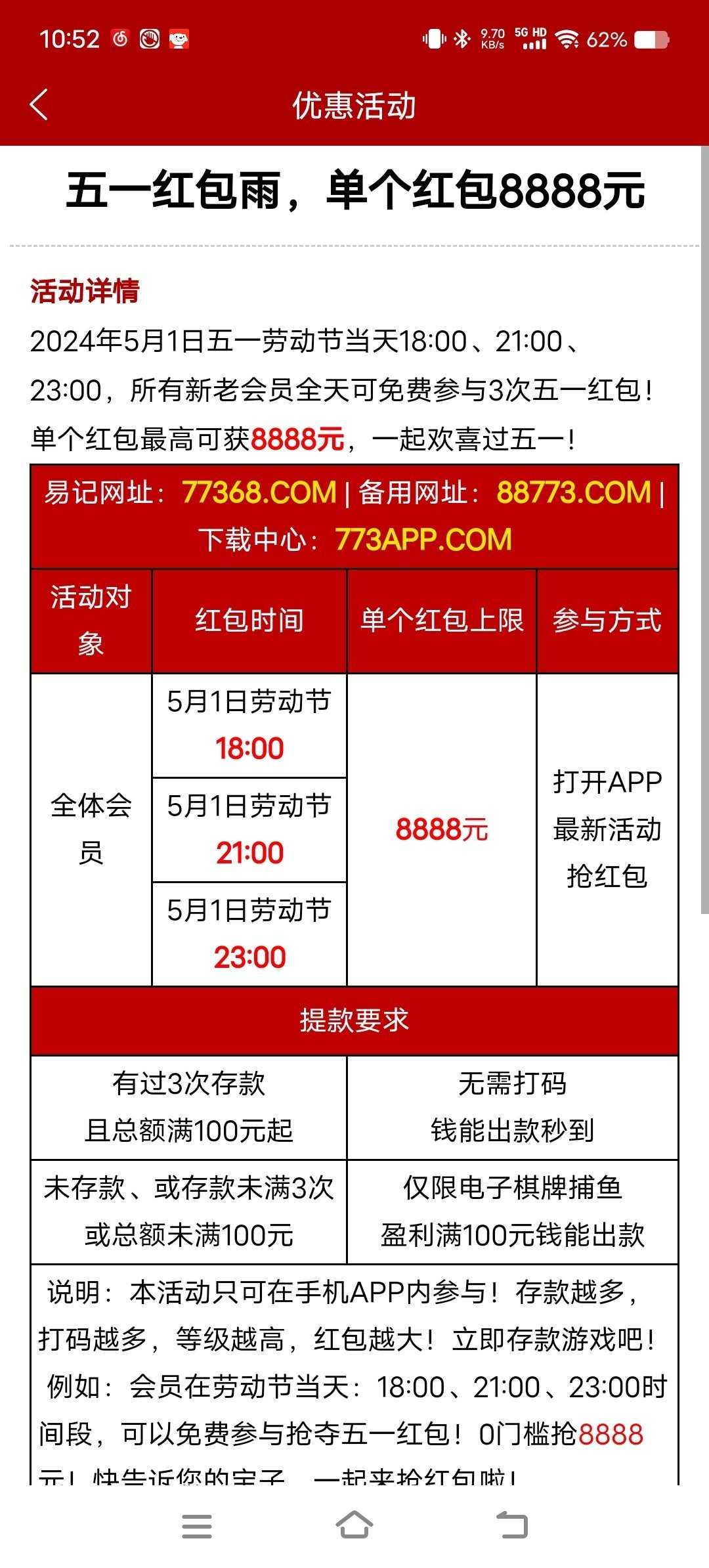 钱能台5月1号回馈彩