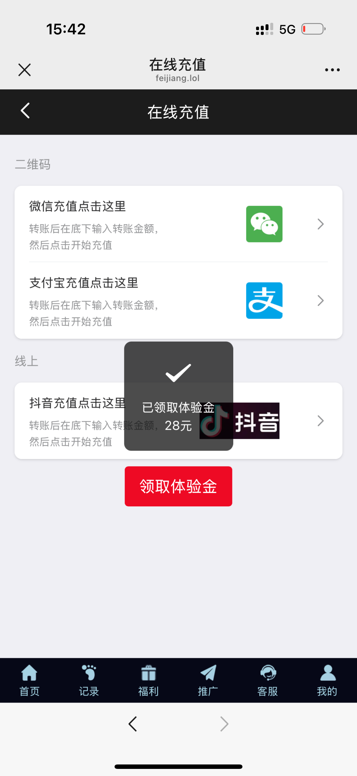 微信扫码一键登录,充值里领取体验金秒送28! 两个都送