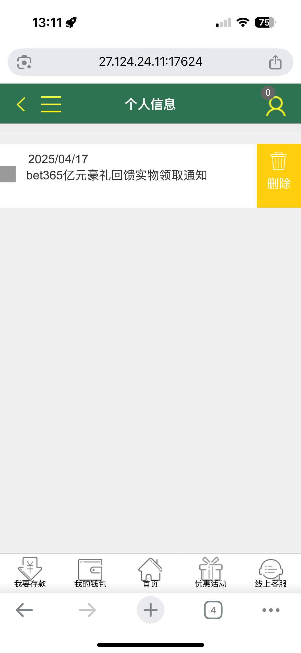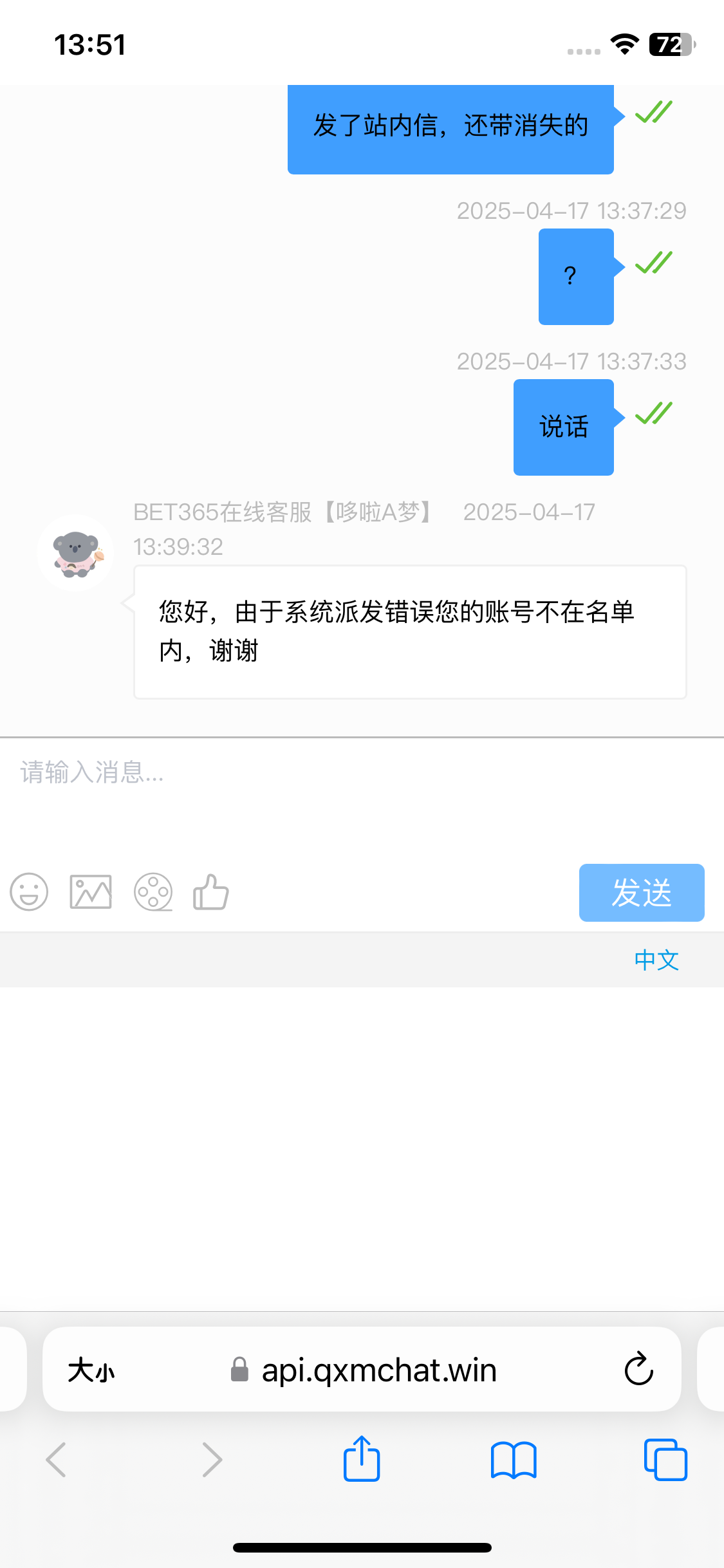 我发了短信站内信都给我消除了