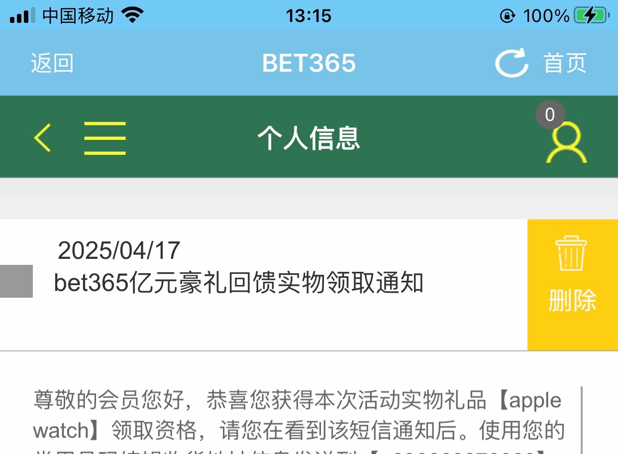 现在啥都没有,彩金也没送,短信也删除了