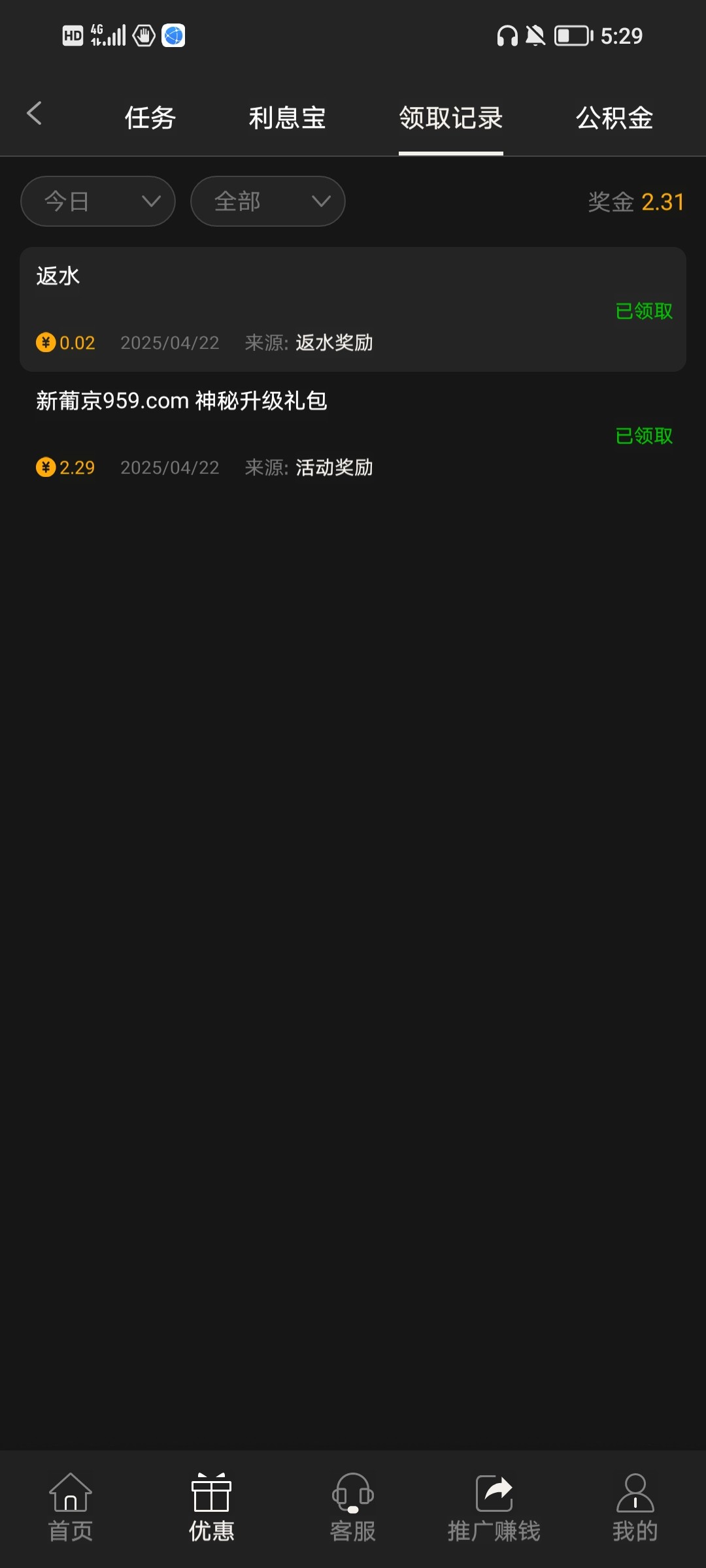 送了两次升级彩金