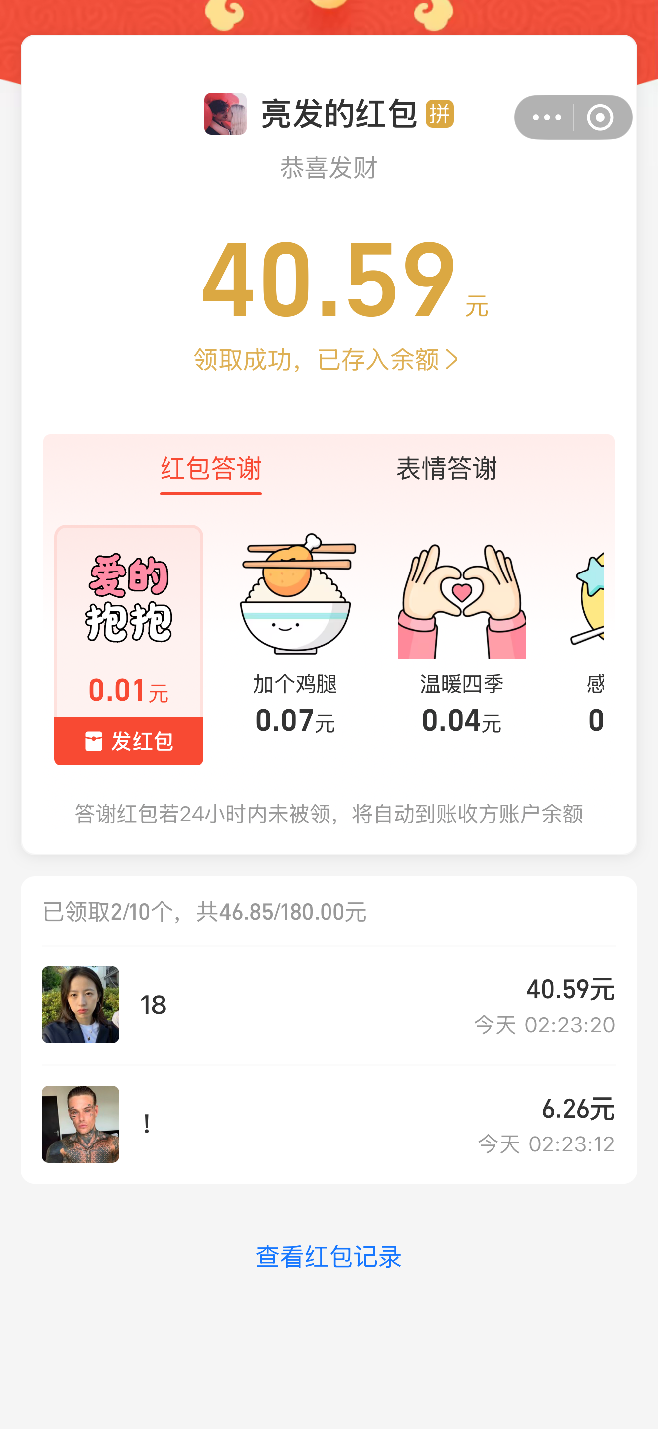 祝大哥吉时吉日喜如风,丰年丰月如风筝,争富争财争长寿,寿山寿海寿长生,生富生才生贵子,子孝孙贤代代荣,荣华富贵年年有,有钱有势有前程 荷花抽一抽,上岸一直走,财源滚滚,万事如意,心想事成,八方来财,牛逼就完事了答应我一直赢下去好吗,然后就上岸,口令没抢到申请一个