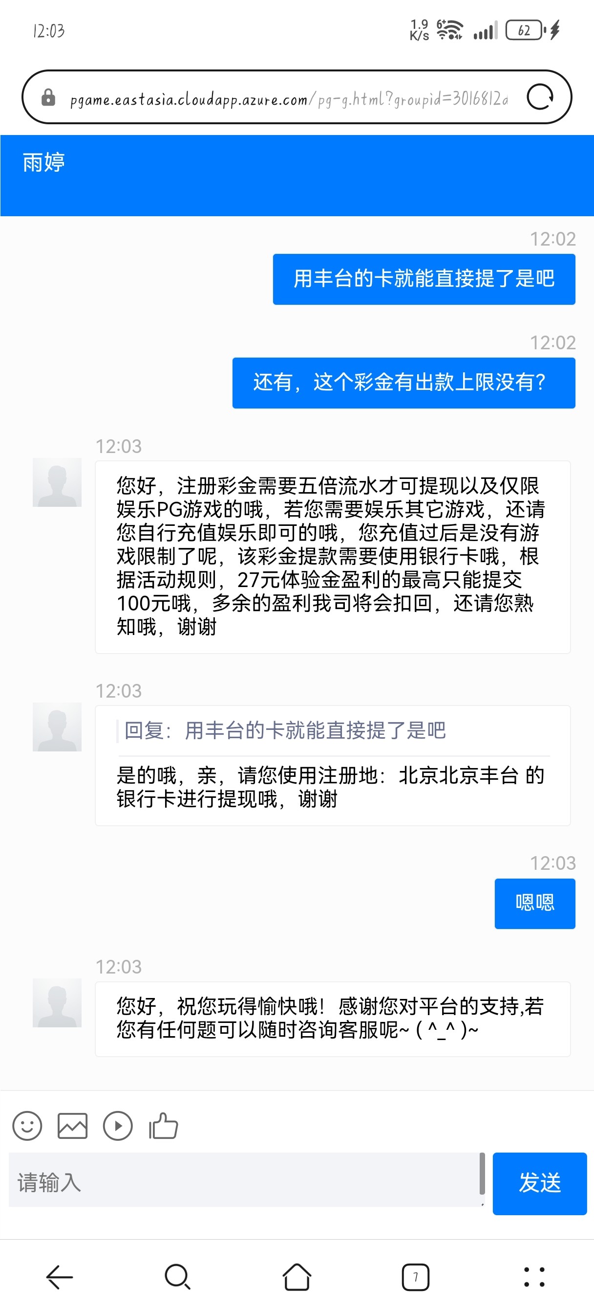 打到90多上不去了充了10块钱打到150提现失败联系客服说投注异常然后给我10块钱退了说只能最多提100居然给提了