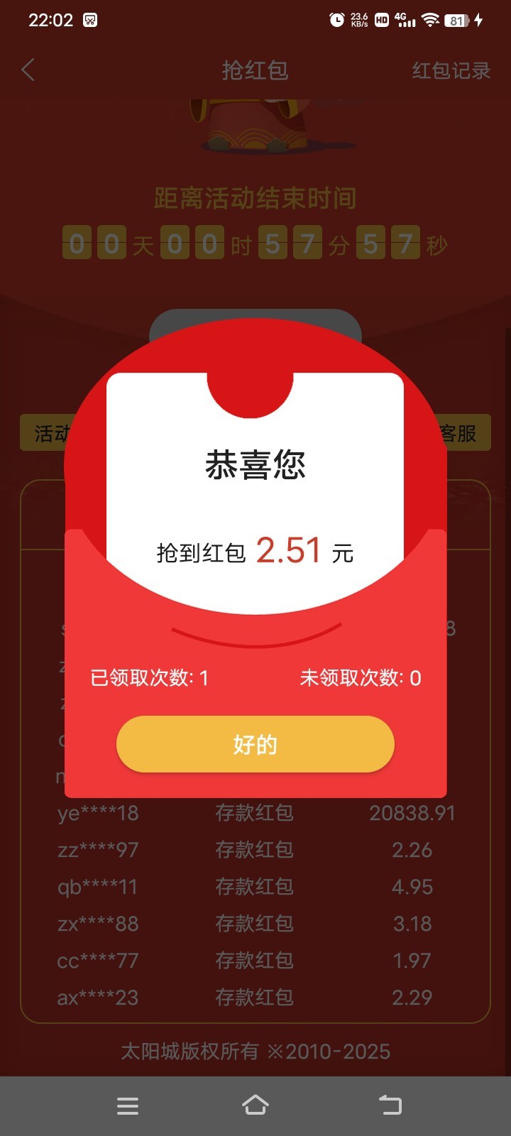 51倍红包抢到了哎