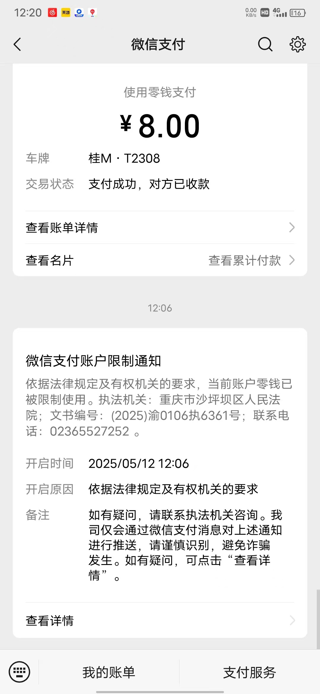 我也是这样微信支付宝银行卡都被冻了,把钱还了就行被人起诉了而已