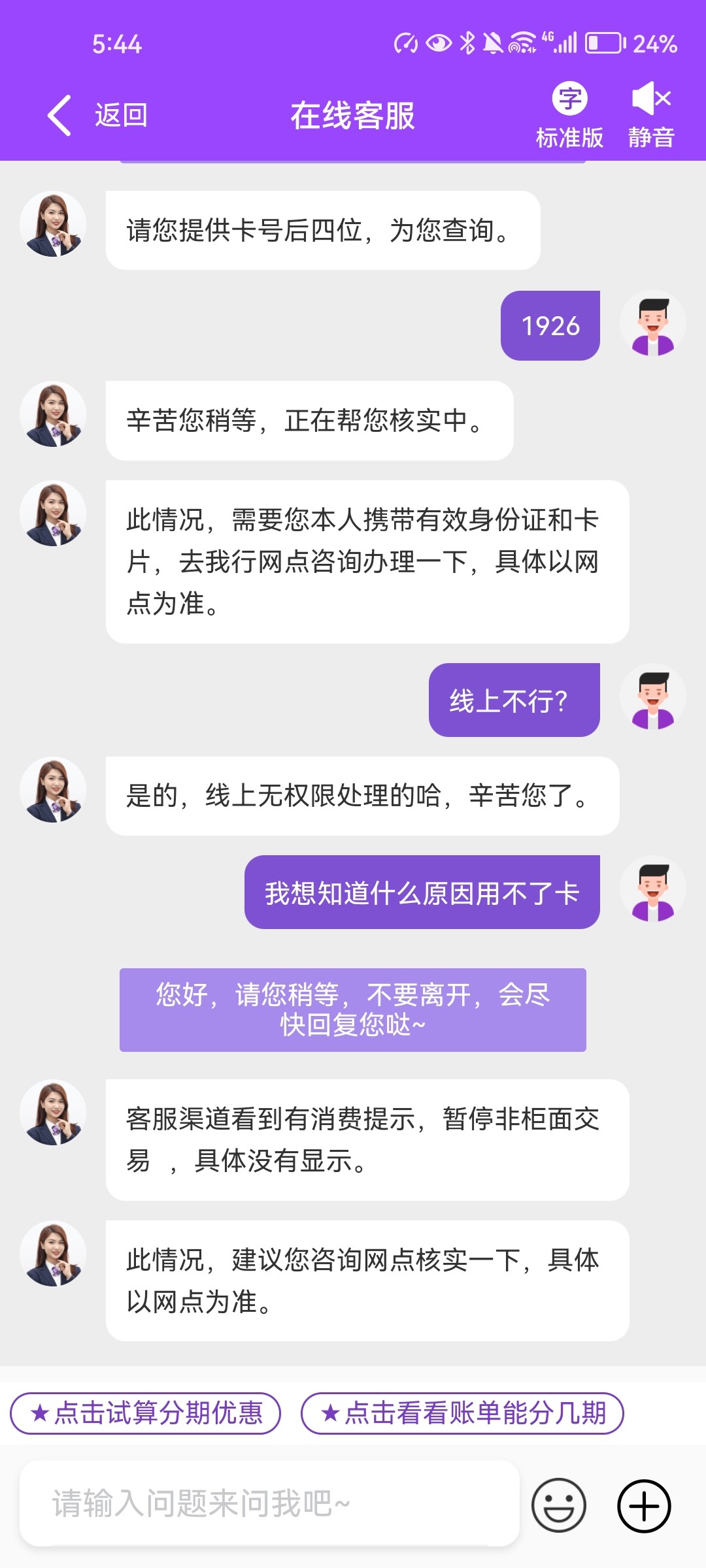 服了 这卡没收过钱 就今天买钱能付款了 然后打电话问我下午这笔700的付款啥原因 说到一半突然挂了 然后卡非柜了 这种去银行没啥问题吧