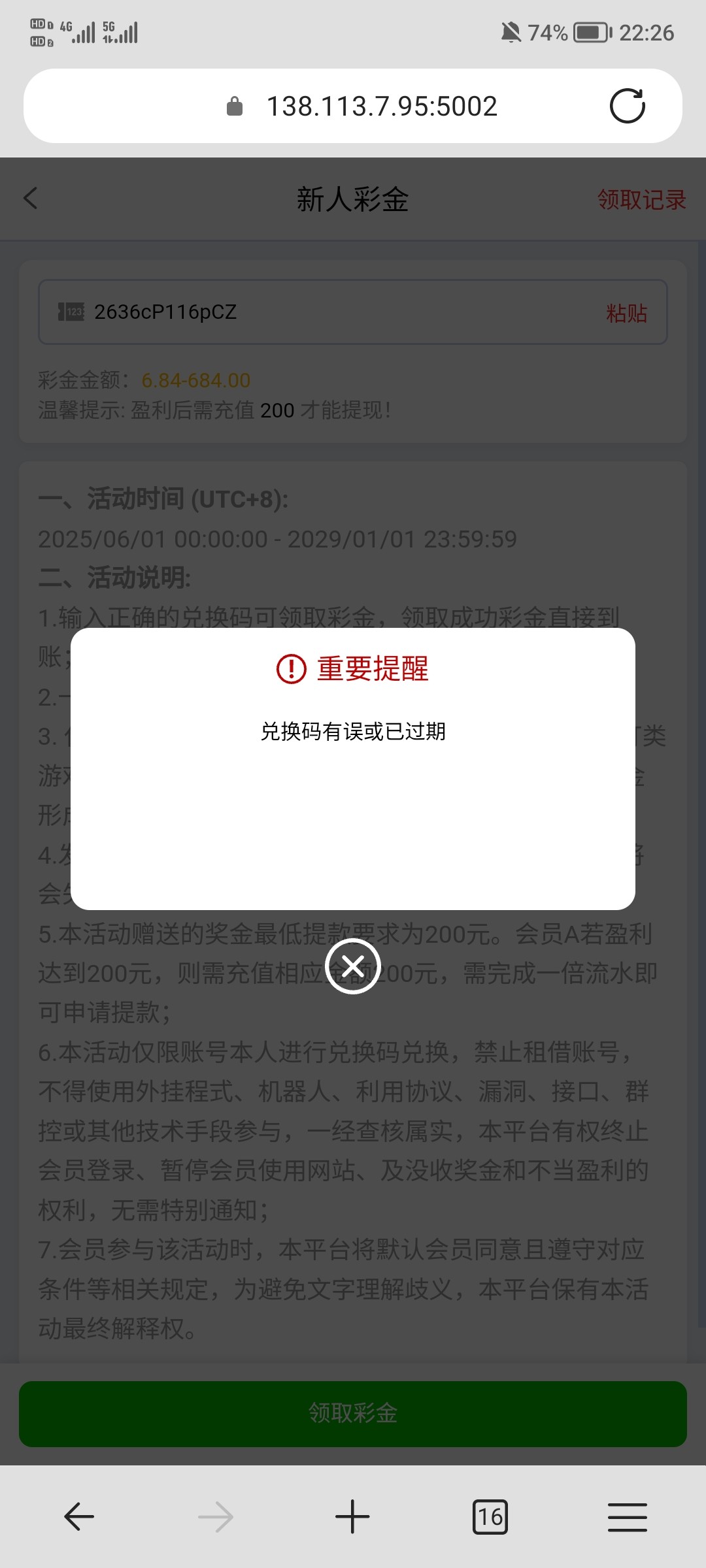兑换码过期