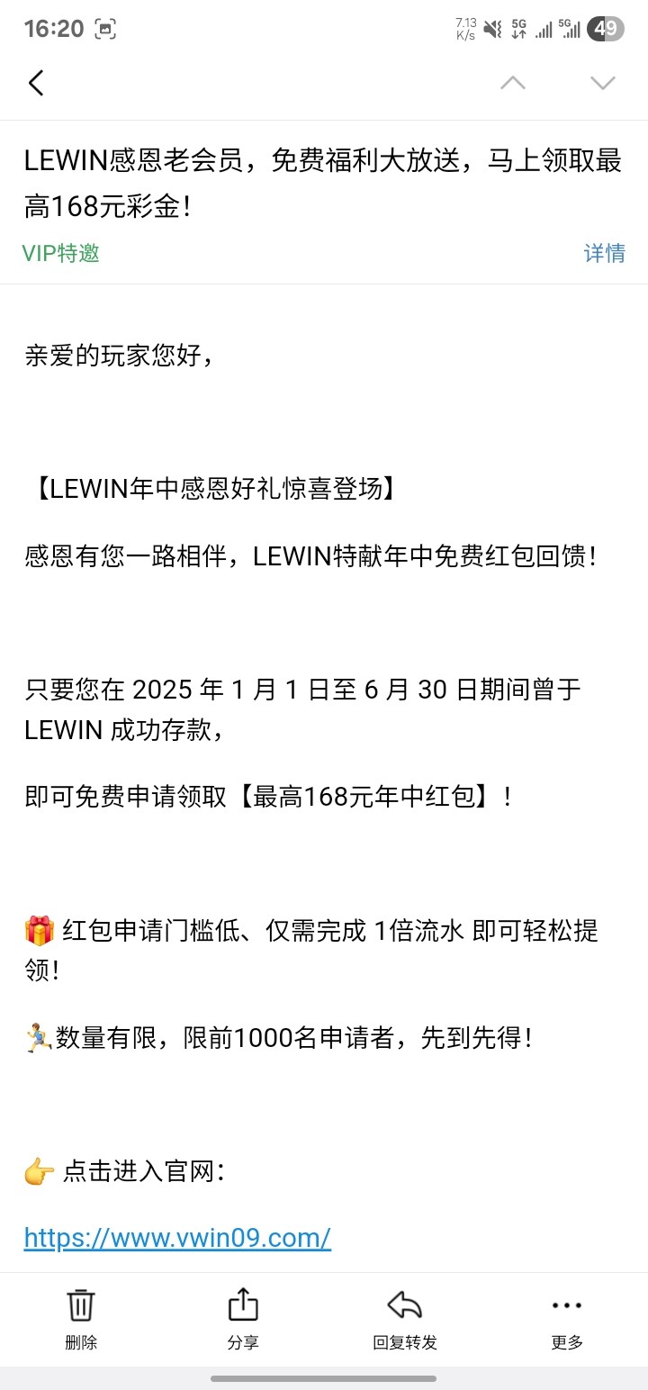 收到邮件的可以去找客服申请,我送了58,之前一共只冲过100