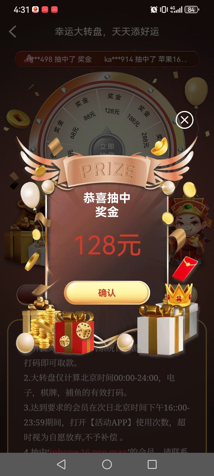 永利高的幸运轮盘,第一次抽,我以为是谢谢内裤,没想到有意外惊喜,昨天捕鱼就打了1000多流水,,227抽钱能转盘都是连着谢谢内裤
