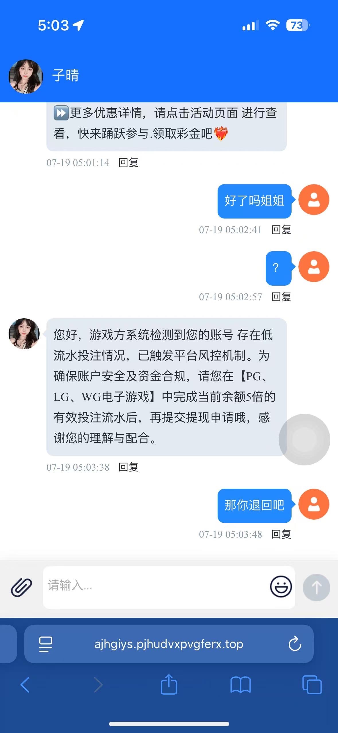 P给大家说一下吧 第一次我充了三千提了3500 第二次充了2000提了3000 直接给我黑了 理由就是异常 赢钱根本提不出来  我太累了兄弟们 开五十打女王一次免费不给 一直掉两个夺宝 我冲一千我都敢开一百一拉 我好累啊兄弟们 赢钱提不出来 太累太累了 心理上的折磨 平台叫pg游戏城0530com 真的太垃圾了 我真的好后悔堵了 没钱去上班 一个月工资五千多六千块钱 全部一把冲进去 我也不说我是什么样的人 玩了这几年 输了钱都可以买辆几十万的车了 太累了兄弟们 早点戒了吧 跟狗庄斗智斗勇 你玩不过的 不管ng还是问鼎 根本没有穩的一说 太累了 路好漫长 输的不只是一个人的心性 高高兴兴去提款 直接黑了 没有耐心 不想磨 只想速战速决 戒了吧兄弟们 我就是最好的列子 管理员勿删帖 我很少发帖子的 看完这些评论你就知道该走什么样的路 也感谢彩虹白菜网 谢谢大家了