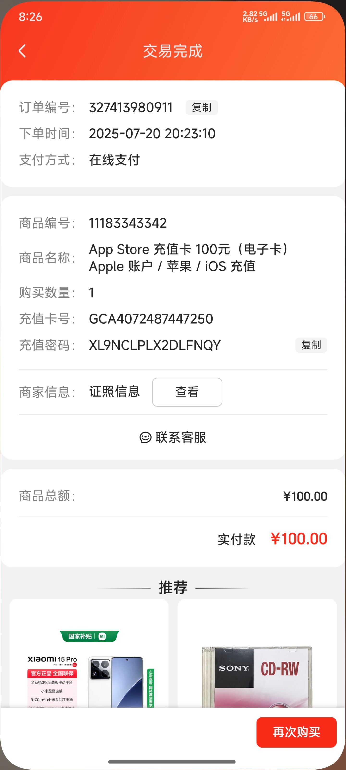 购买到充值只用了10秒钟,还说不是它司是核销的,已经被黑了三次了,这个通道也只能怪自己不长记性,我只是提个建议,大家嘴下留情。