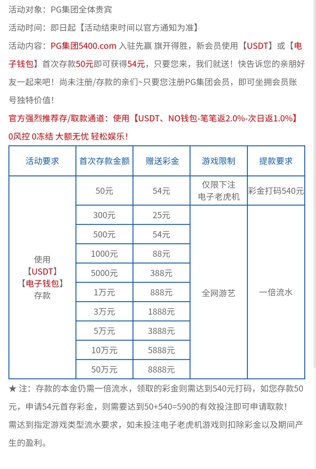 新人注册首存50+54,详情看活动介绍,月中有回馈,玩过的注意一下。