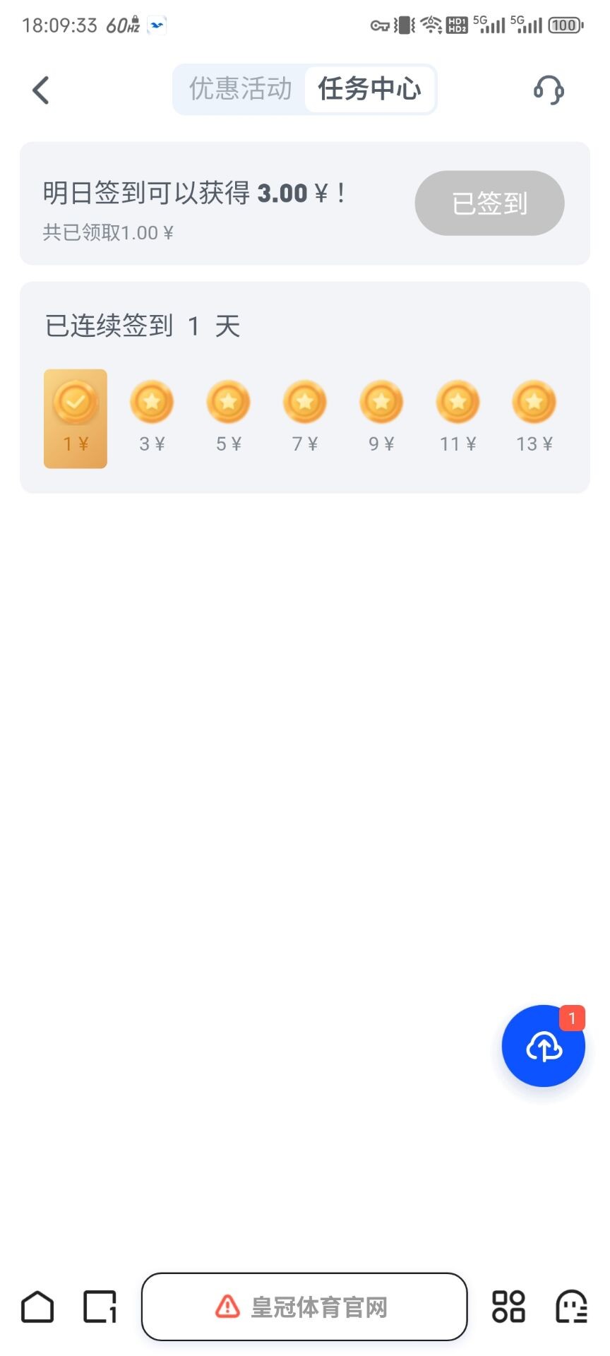 皇冠签到领取3彩金