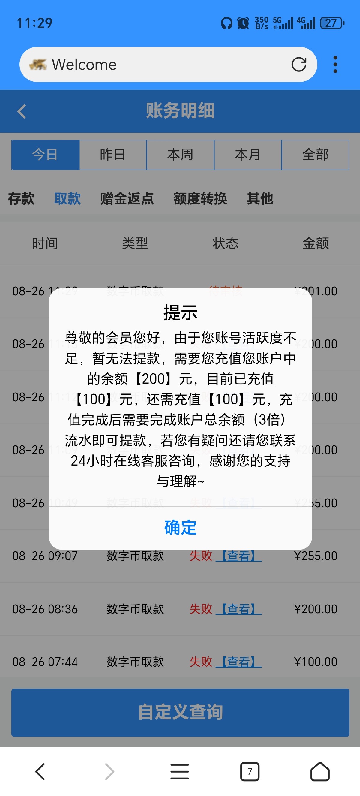 金盛我刚提了200回访58提的,这个月就冲过一次,可能你太久没冲了,反正我没被黑过,都是小额