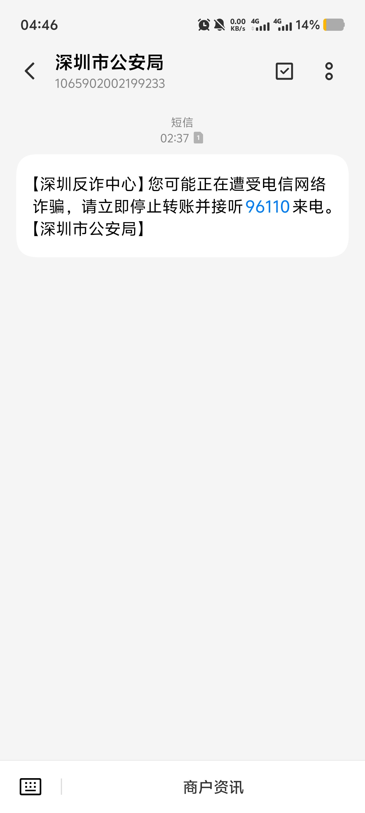 收到这个短信了,过不了多久就有反诈打电话了,