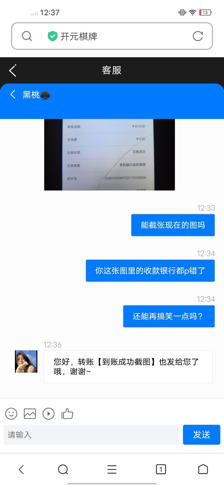 充两百打电子打上五百,提现一直跟我说是银行延迟,最后等半天,截了张转账图给我,他妈的,收款银行都P错了