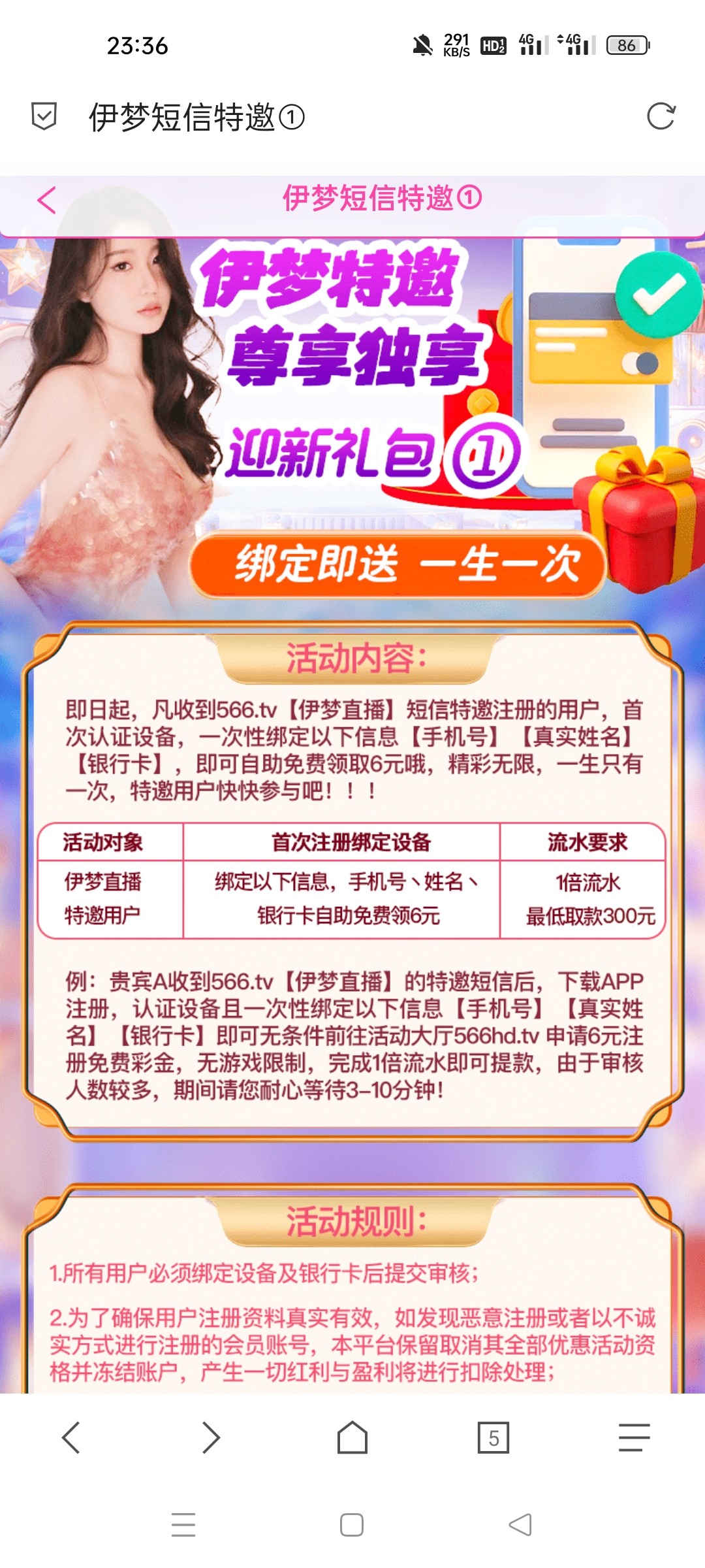 伊梦特邀送6彩金