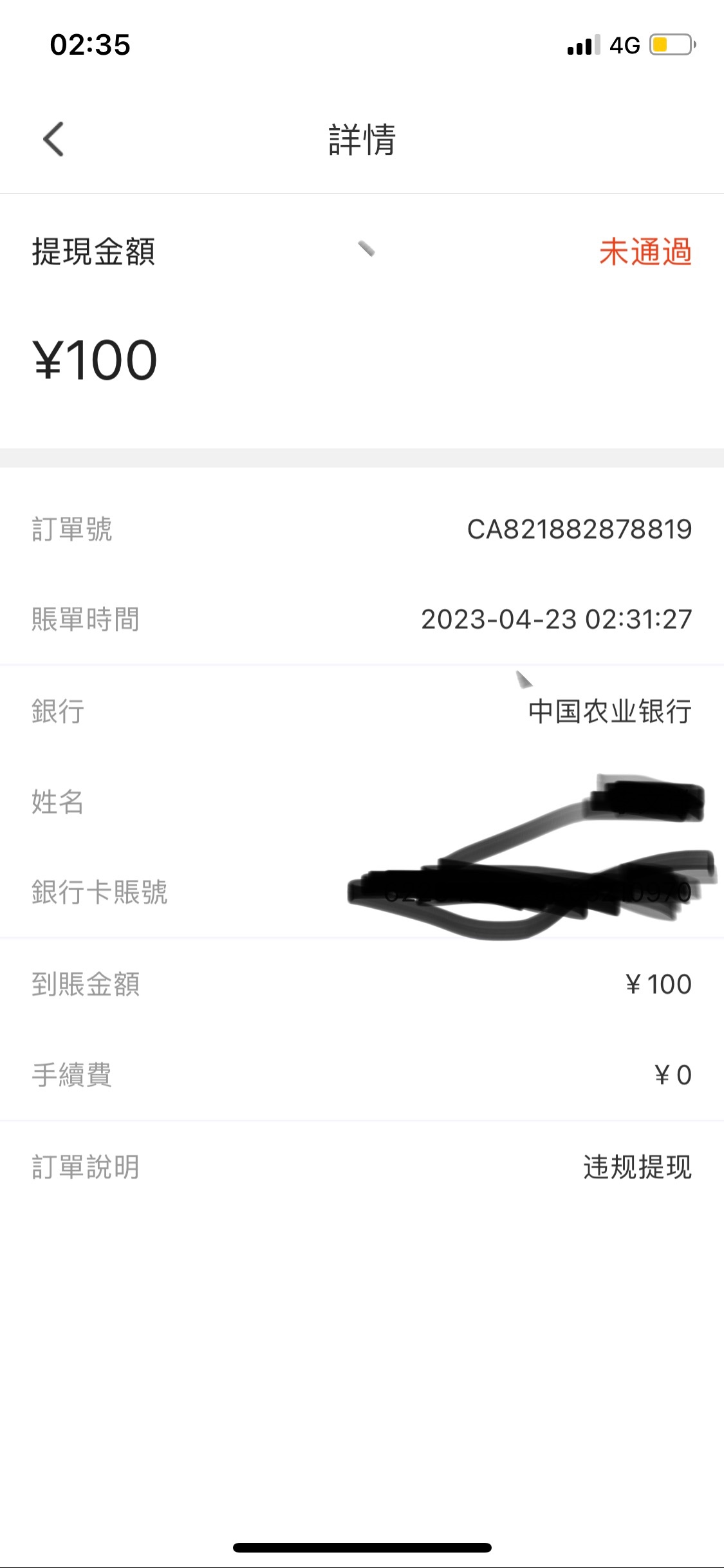 提了100,等到账