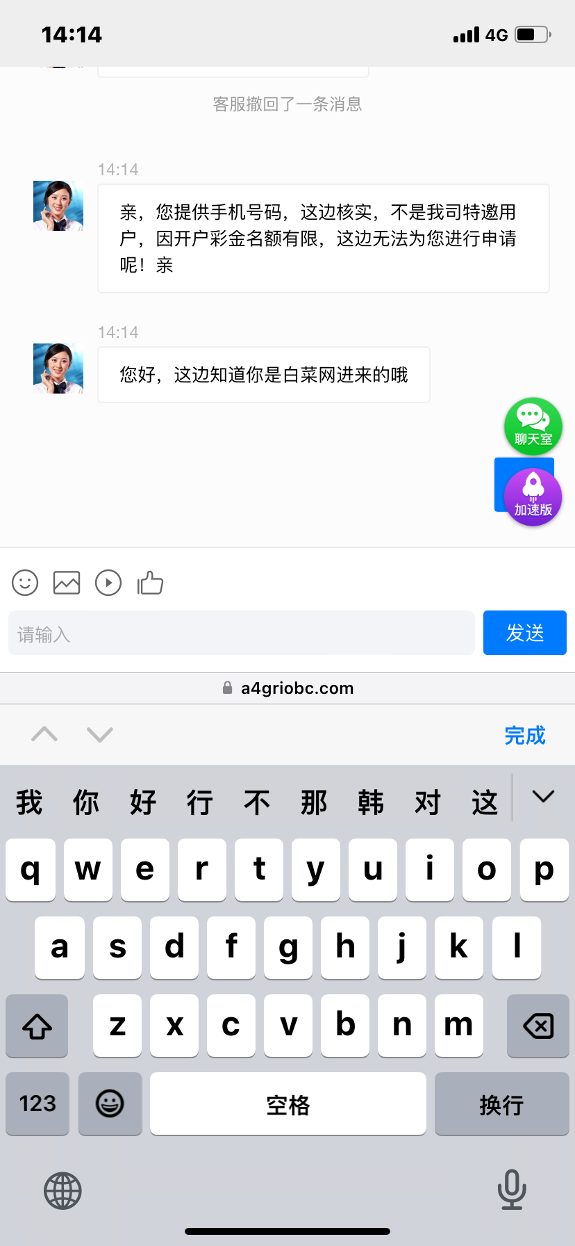 big108 不发网站发个客服截图出来干啥?谁要你聊天app了,你发网站让我们自己去申请就是,你这样直接发聊天app死的快,哎一群不懂撸菜的小白,