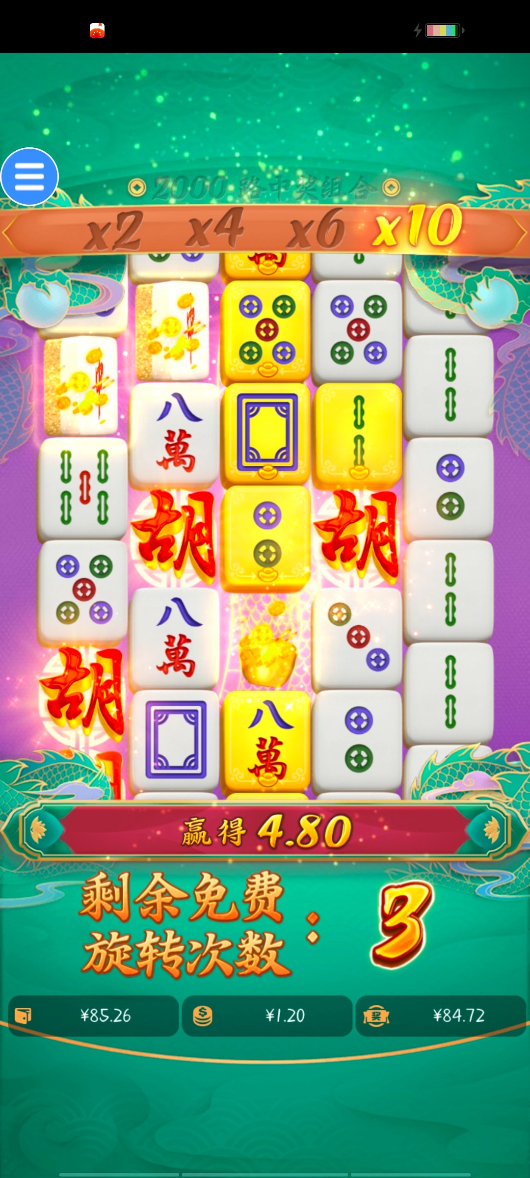 充30多ip没送,去摇女王一点水没有,玩的我烦剩13块去摇麻将,直接6块的,前俩手全没中,一没钱1.2的三个胡就来了,无语了。