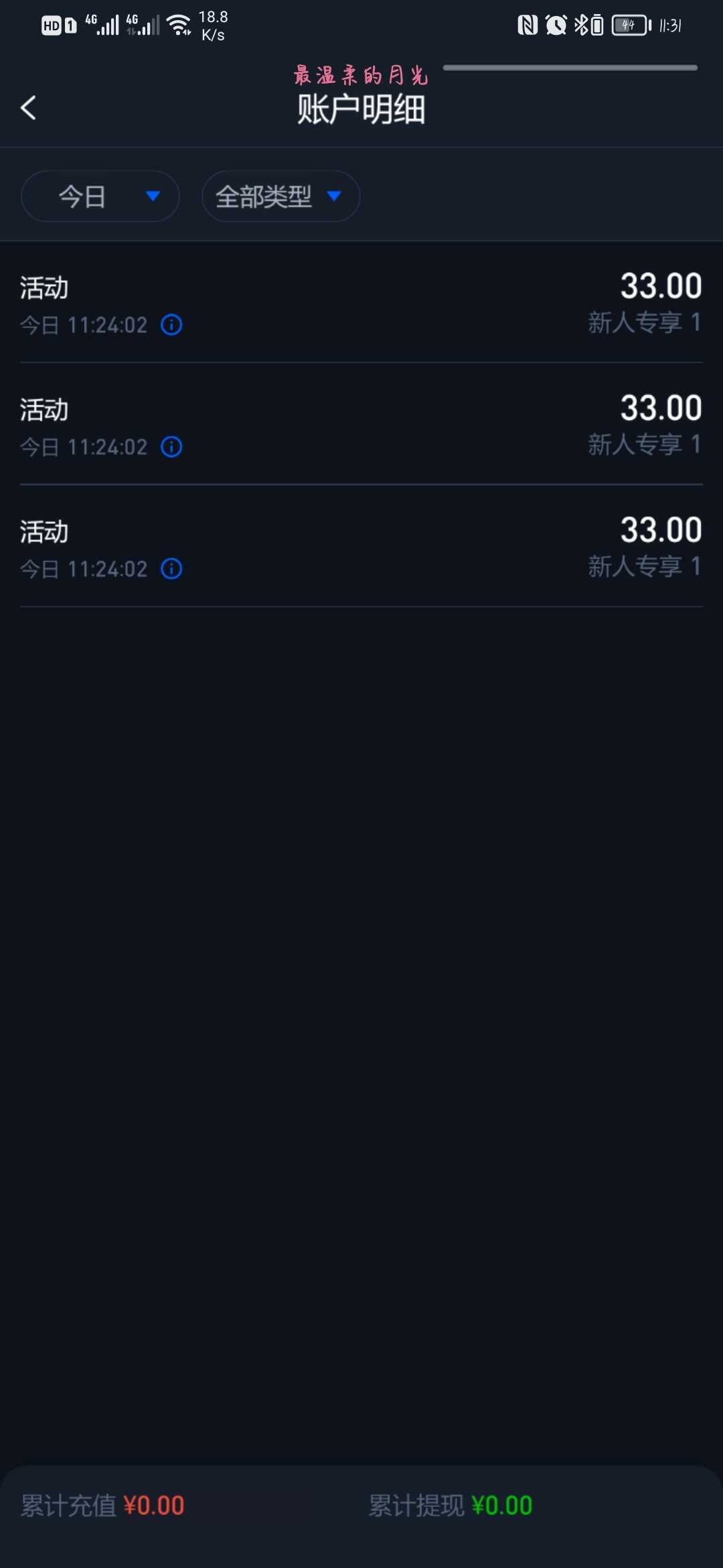 ly20020909 没有你提醒我都提不了等一个多小时没有,看到你说了,又重新下载上号,发现有33,拉了一会儿,0.6麻一,报了80多就120,后面流水不够,拉了会剩80捕鱼又打上来提了100等到账,谢谢你老哥