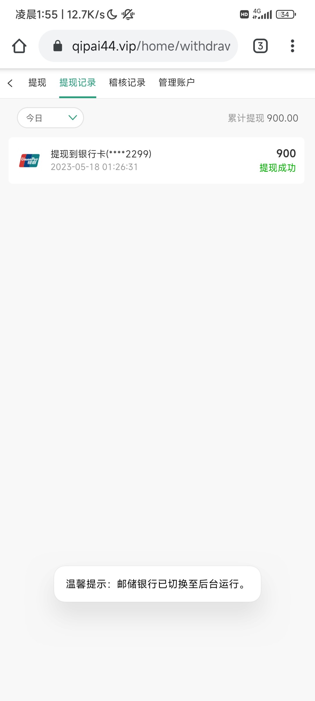 台子已经删了, 第一个号 上 500 死活上不去我就知道没水了, 果断重新注册一个号 重新打,水也不大, 50 提了 150 就跑路了,哈哈哈哈哈